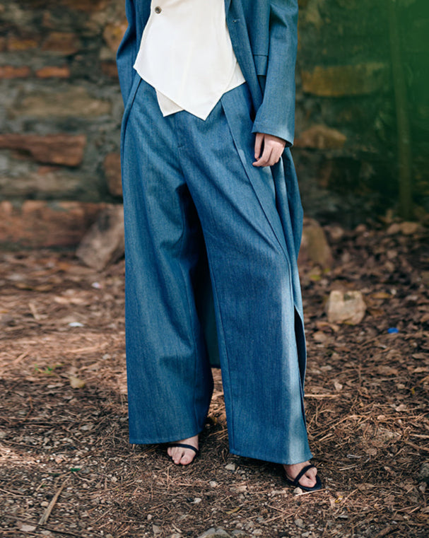 Revamp your wardrobe with our versatile Flip Flap Jeans in Blue. Our signature kung fu pants are transformed into these innovative jeans, featuring a unique side panel that can be worn in multiple ways. With button up details on both sides of the waistband, create a stylish slit while walking. Upgrade your style game today!