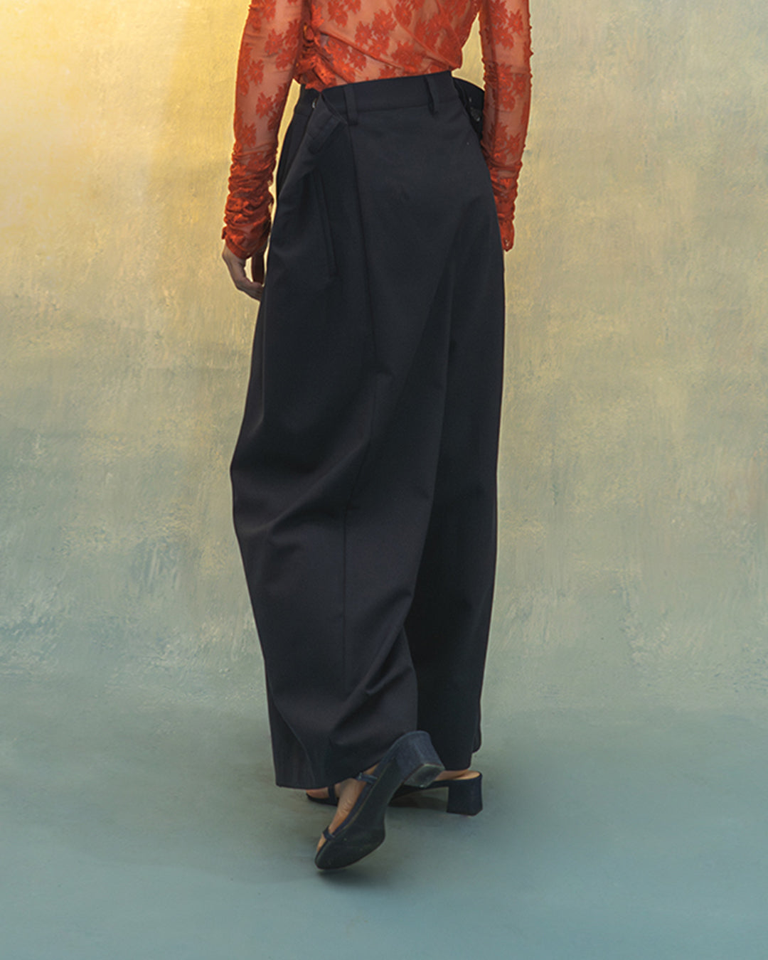 This product is inspired by traditional square cut kung fu and fishermen pants. However, it has been transformed into a modern way with adjustable waist size. The pants feature button up details on both sides, allowing for two ways to wear them - with or without a belt.