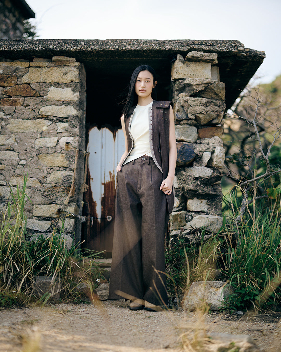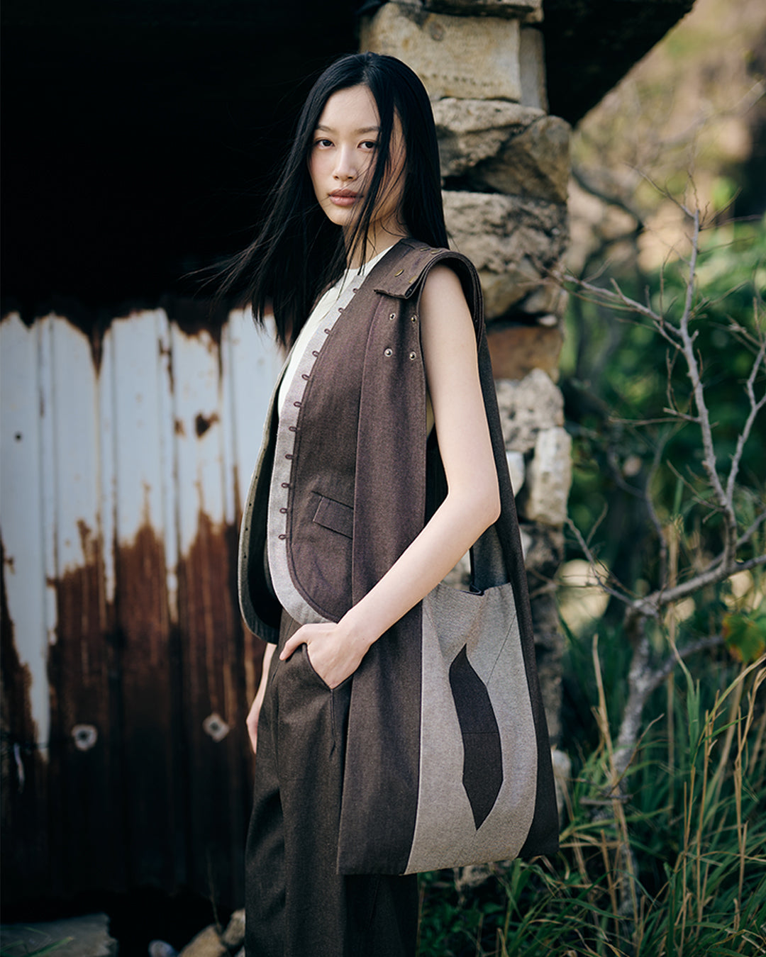 The Denim round vest in brown features a curvy shape of bottom front & back, with a large armhole design for a slimming effect. The vest boasts 11 buttons on the center front, with only 3 serving a functional purpose and the remaining 8 for decoration only. Additionally, the vest includes a stylish flip pockets design for added convenience.