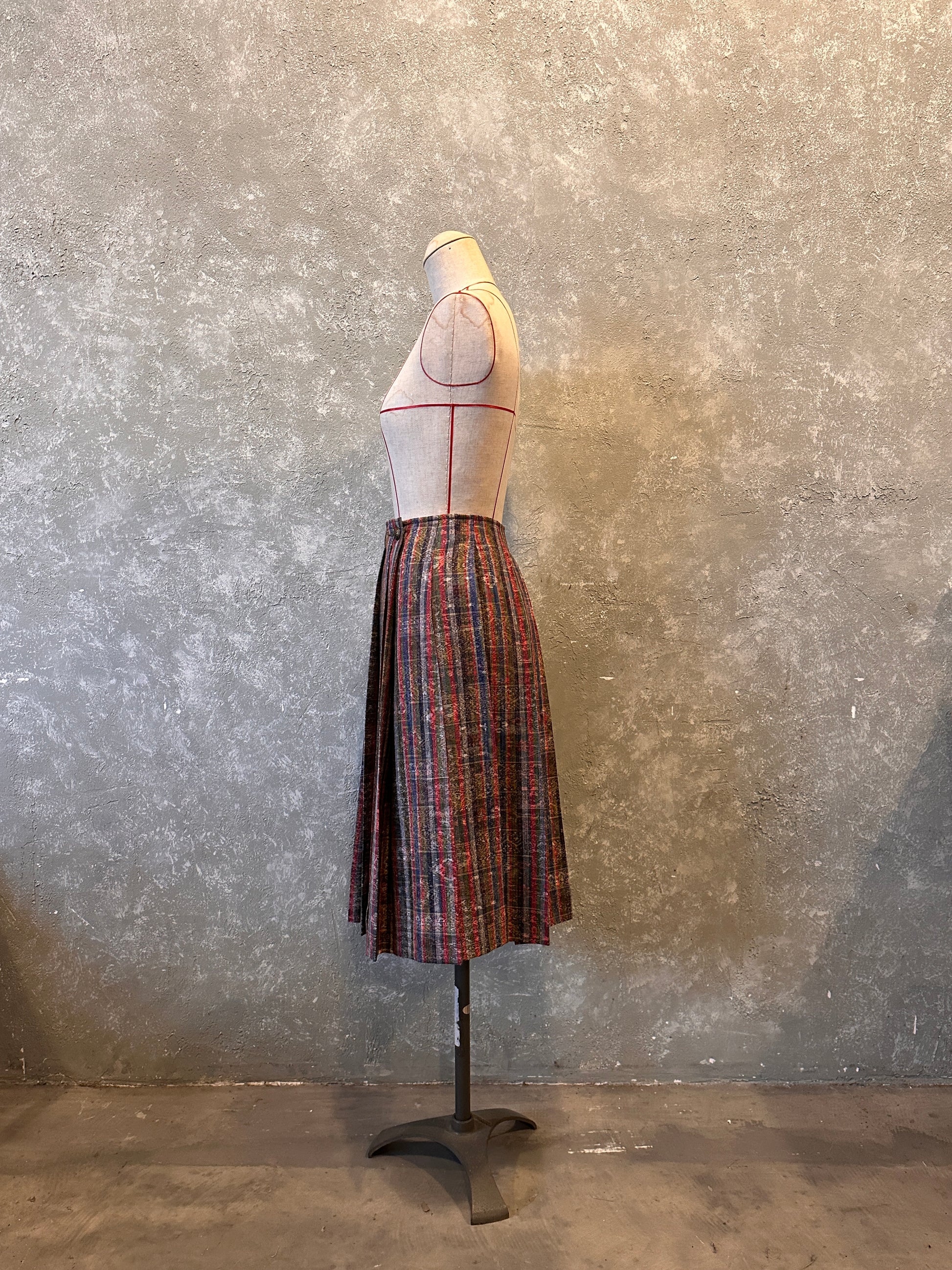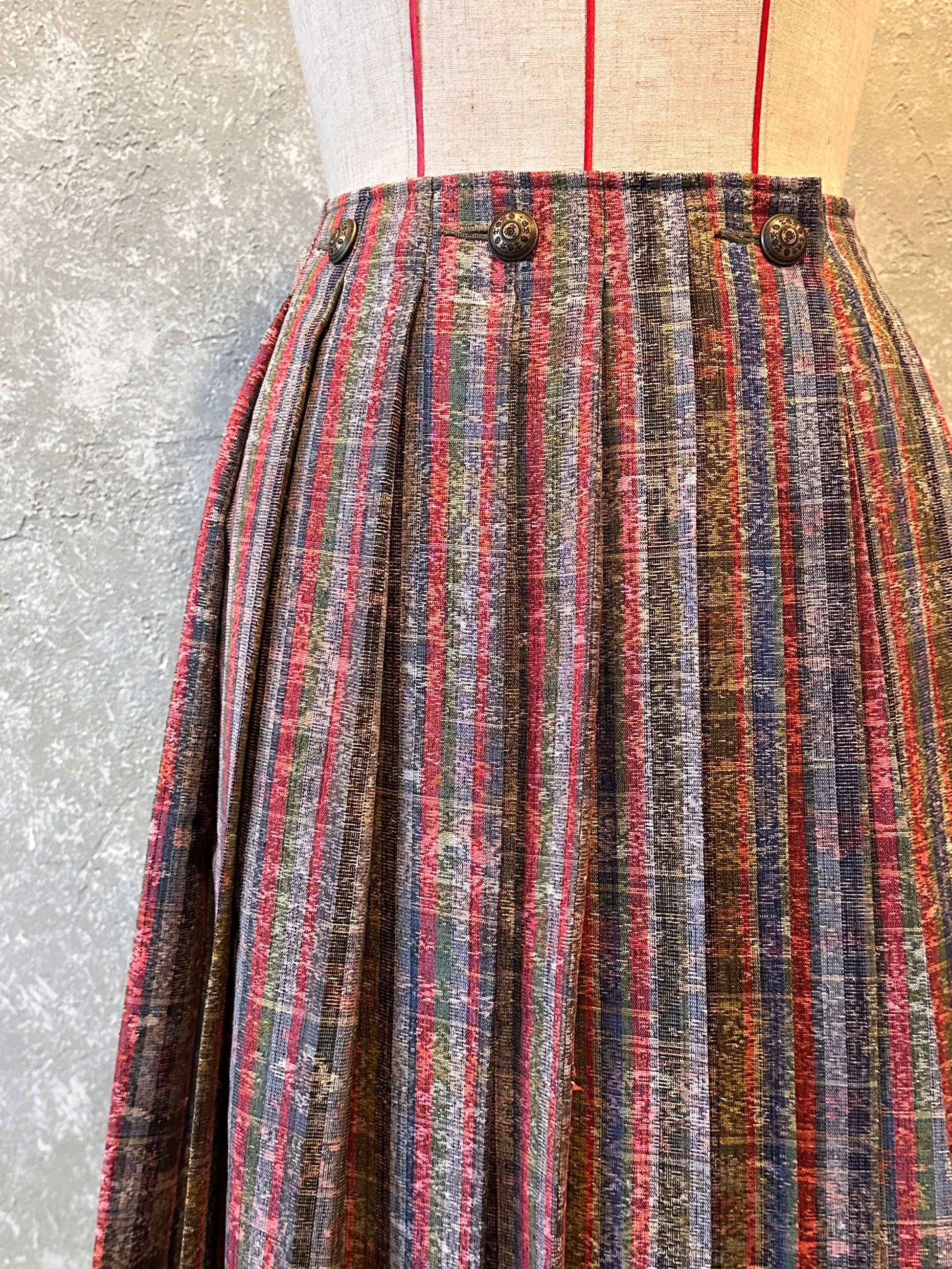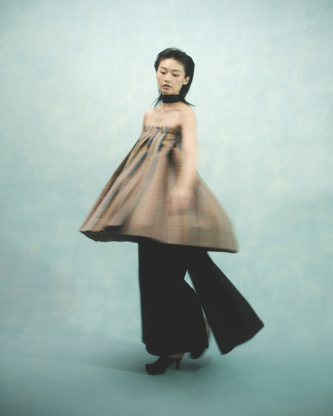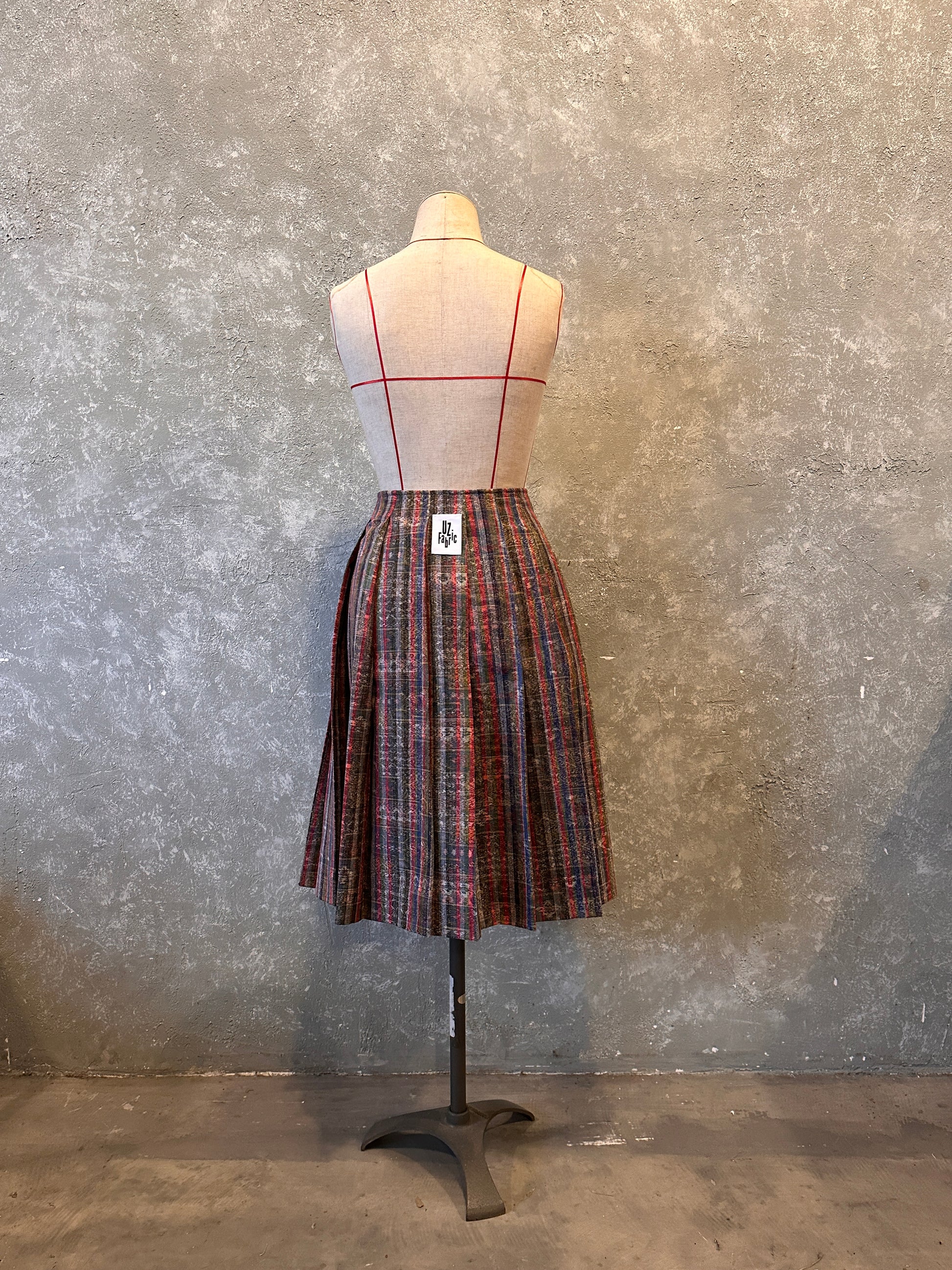 This versatile garment can be worn as a tube top or skirt, featuring an ascending pleat width design and a discreet single welt pocket hidden within the pleat. The 3 button holes allow for adjustable sizing, making it a cross-over item. It is crafted with vintage kimono fabric from UZ FABRIC, a Japanese company dedicated to upcycling, and constructed with a modern high design interpretation for future generations. Each kimono is used to create one unique fold skirt, making this a one-of-a-kind piece.