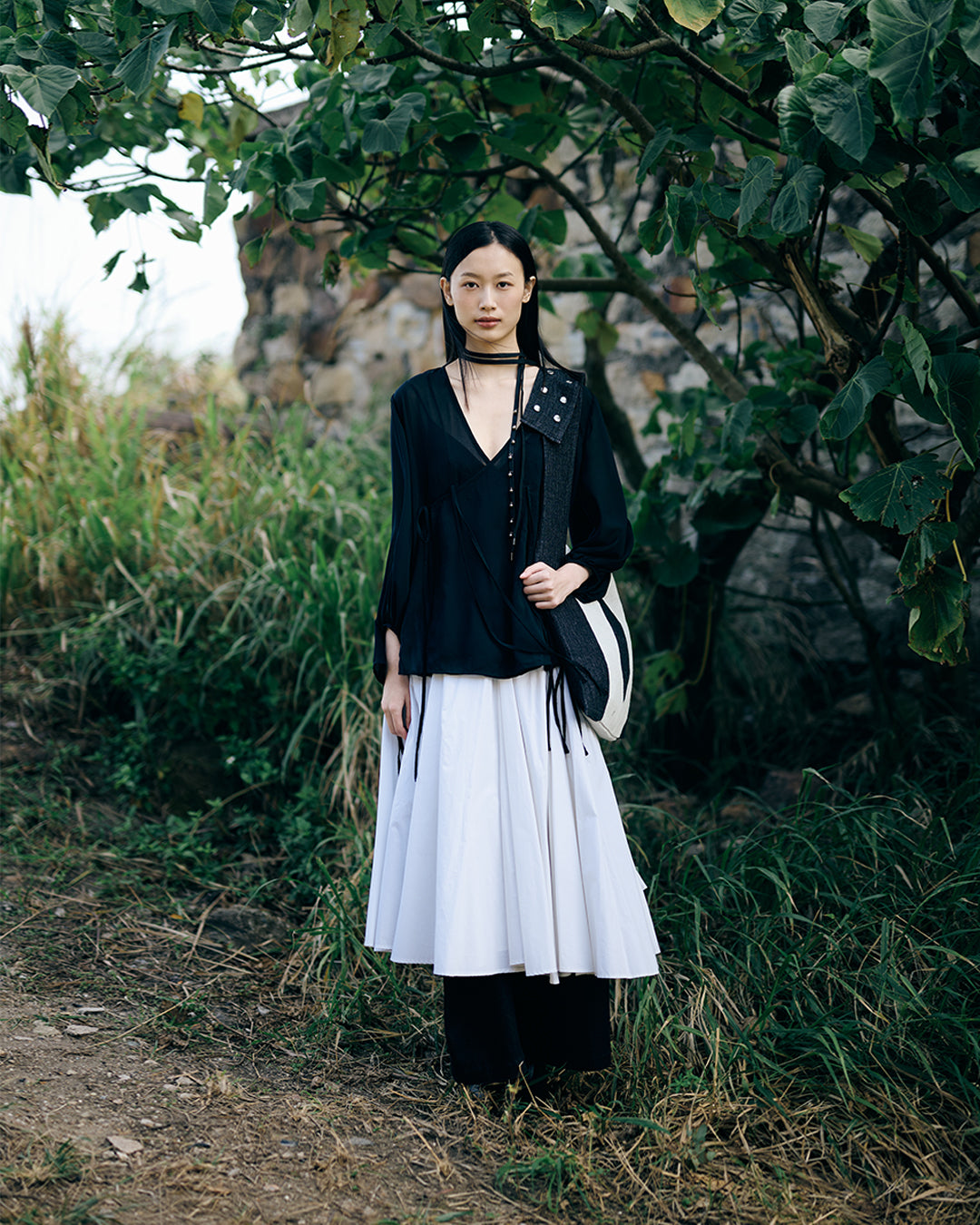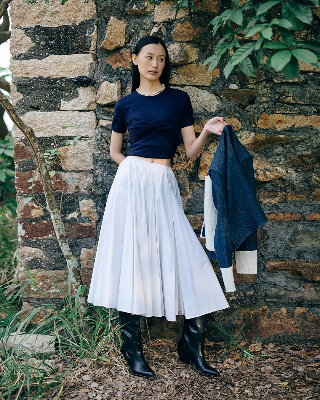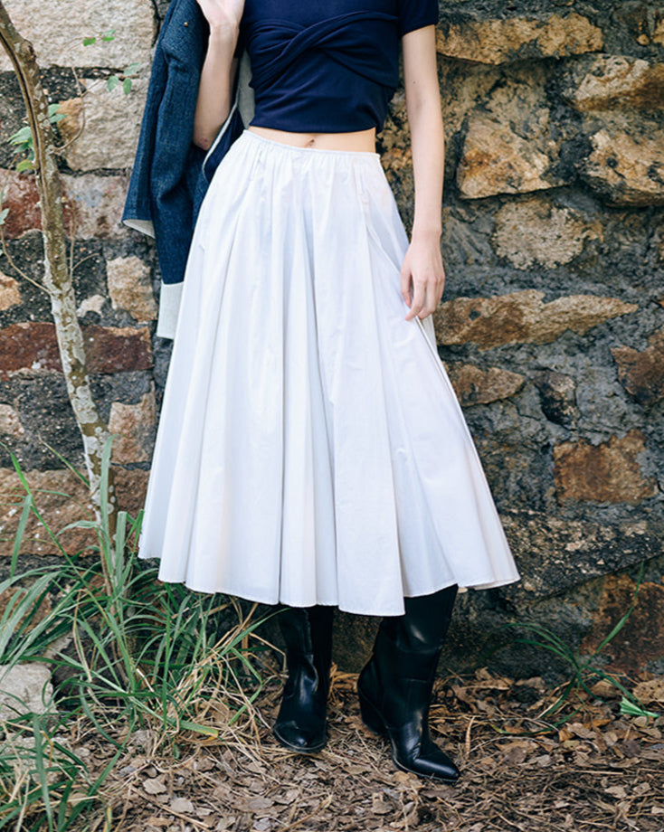 Funnel skirt in white light weight cotton shirting (pre-order)
