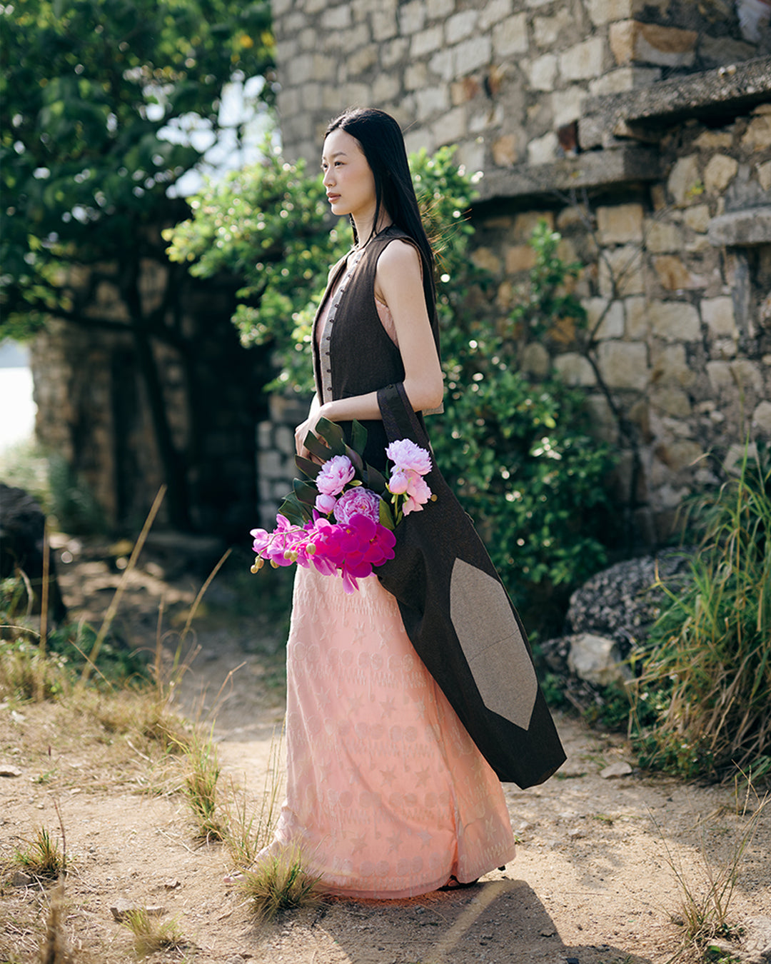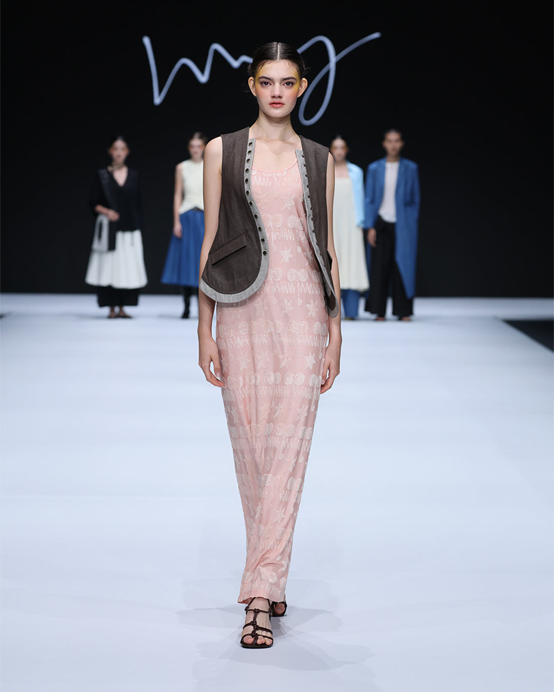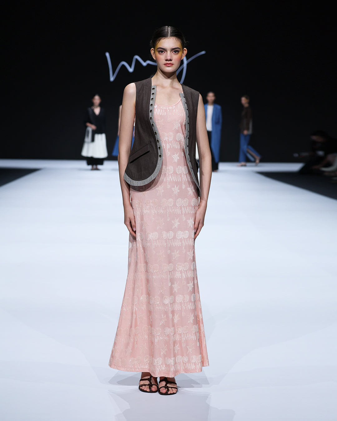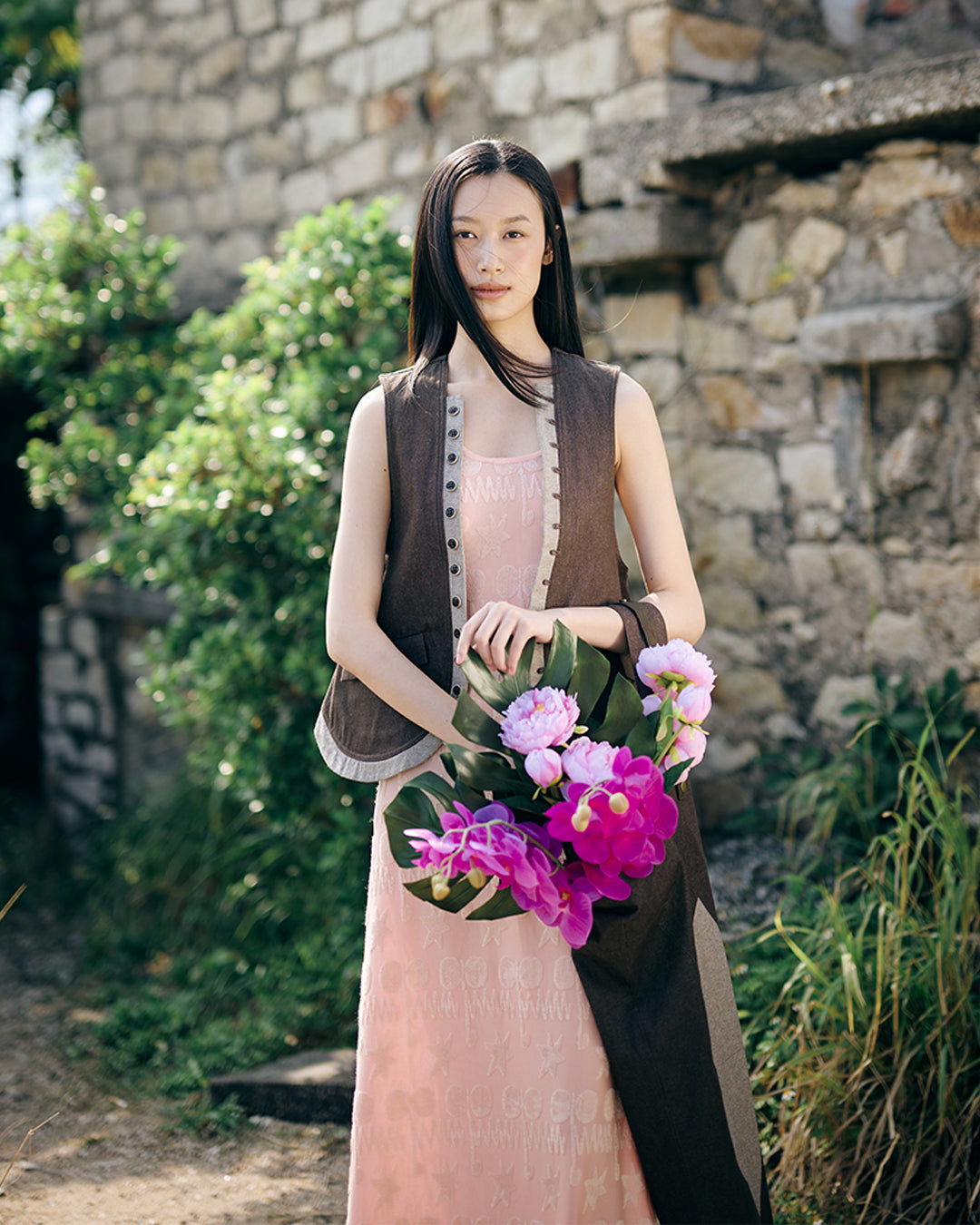 This terry cloth pink jersey maxi vest dress features a tribal-inspired pattern that is versatile and easy to mix and match. A must-have piece for any fashion-forward wardrobe.