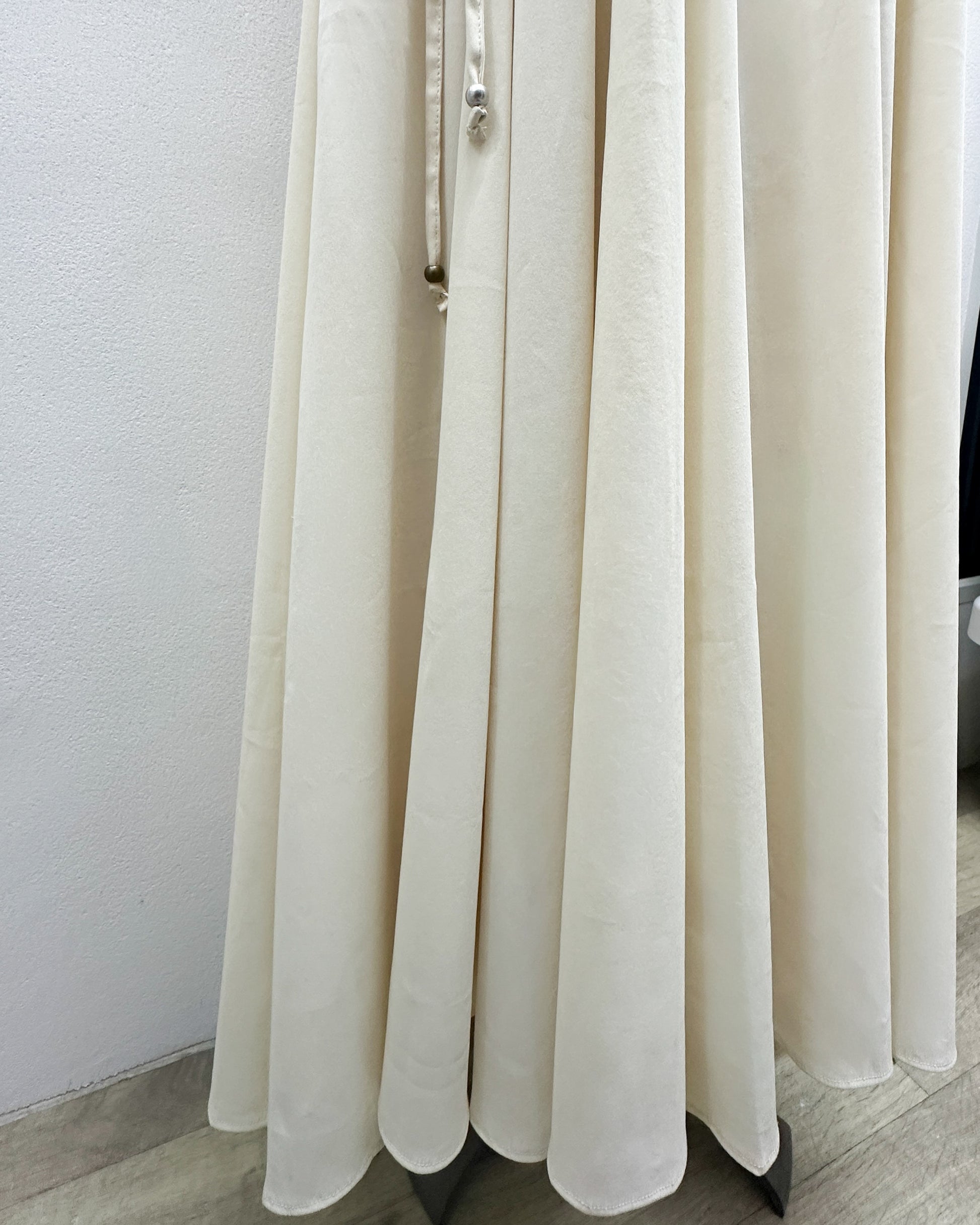 - Unique 8-panel funnel shape design creates a stunning voluminous and draped silhouette for an elegant, flattering fit
