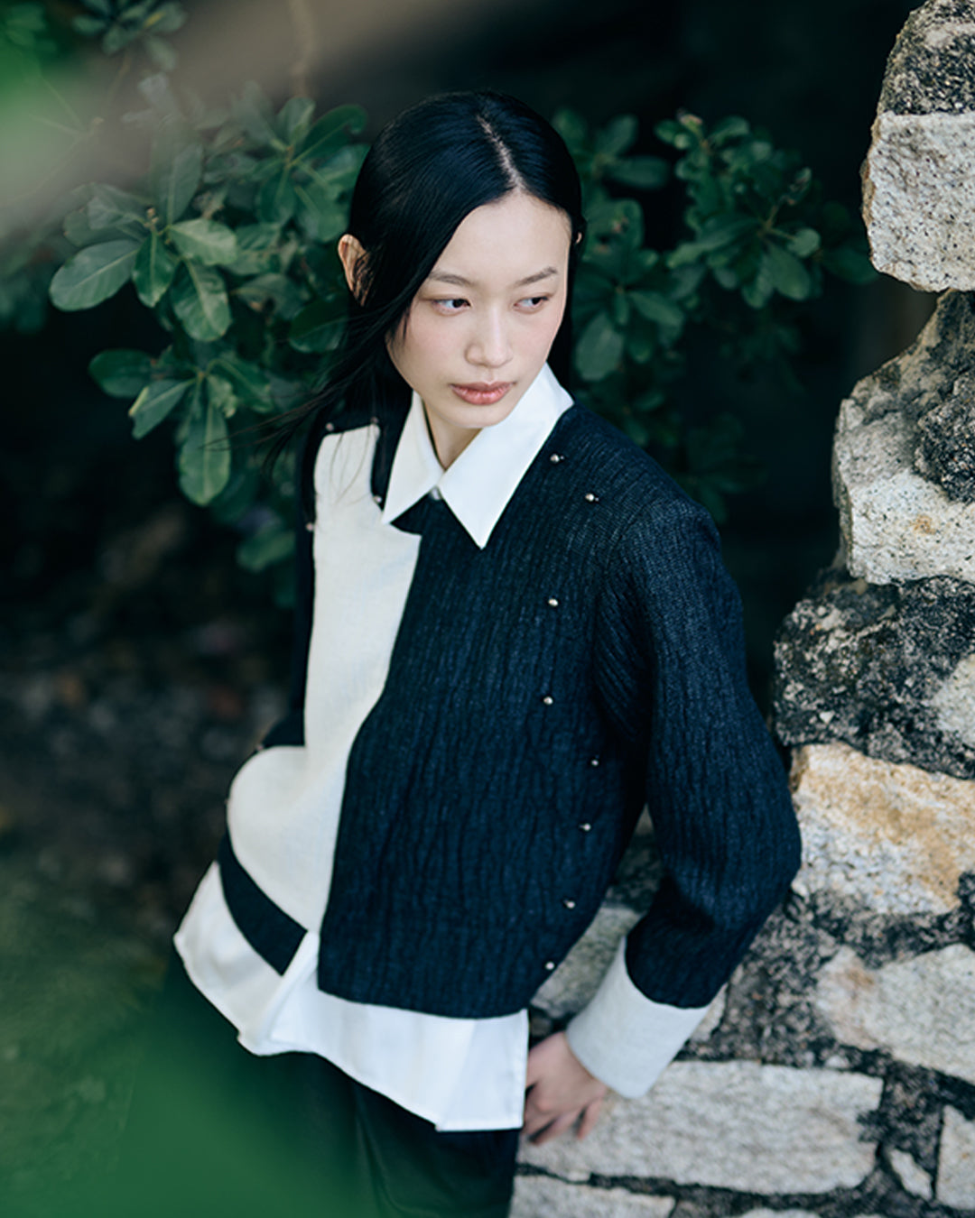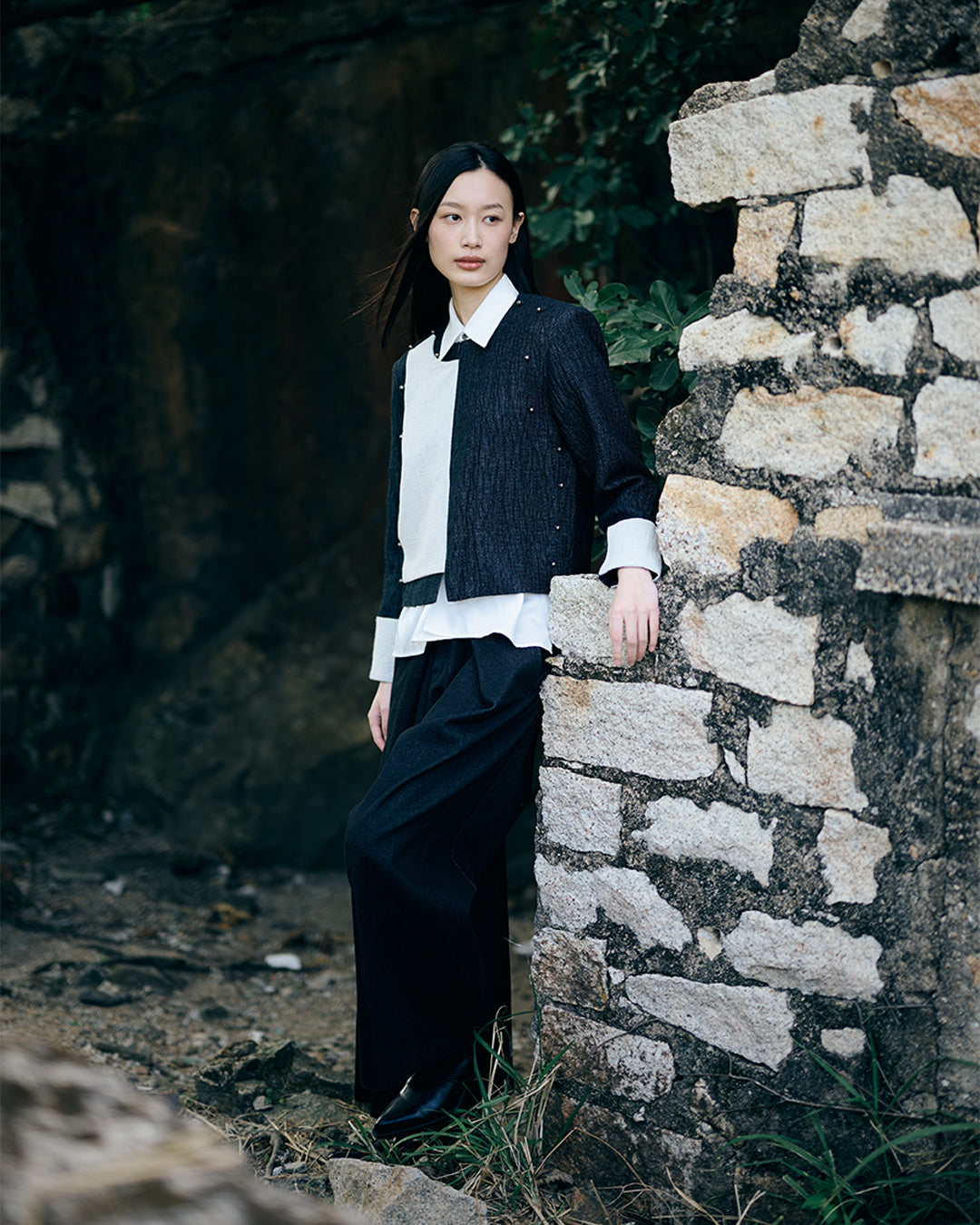 Expertly crafted and inspired by Chinese Indigenous clothing, the Tribe blazer boasts a unique patched panel and button up details. Designed with shoulder pads in double gauze fabric and lined with bemberg, this black cotton linen blazer offers both style and comfort. Upgrade your wardrobe with this one-of-a-kind piece.