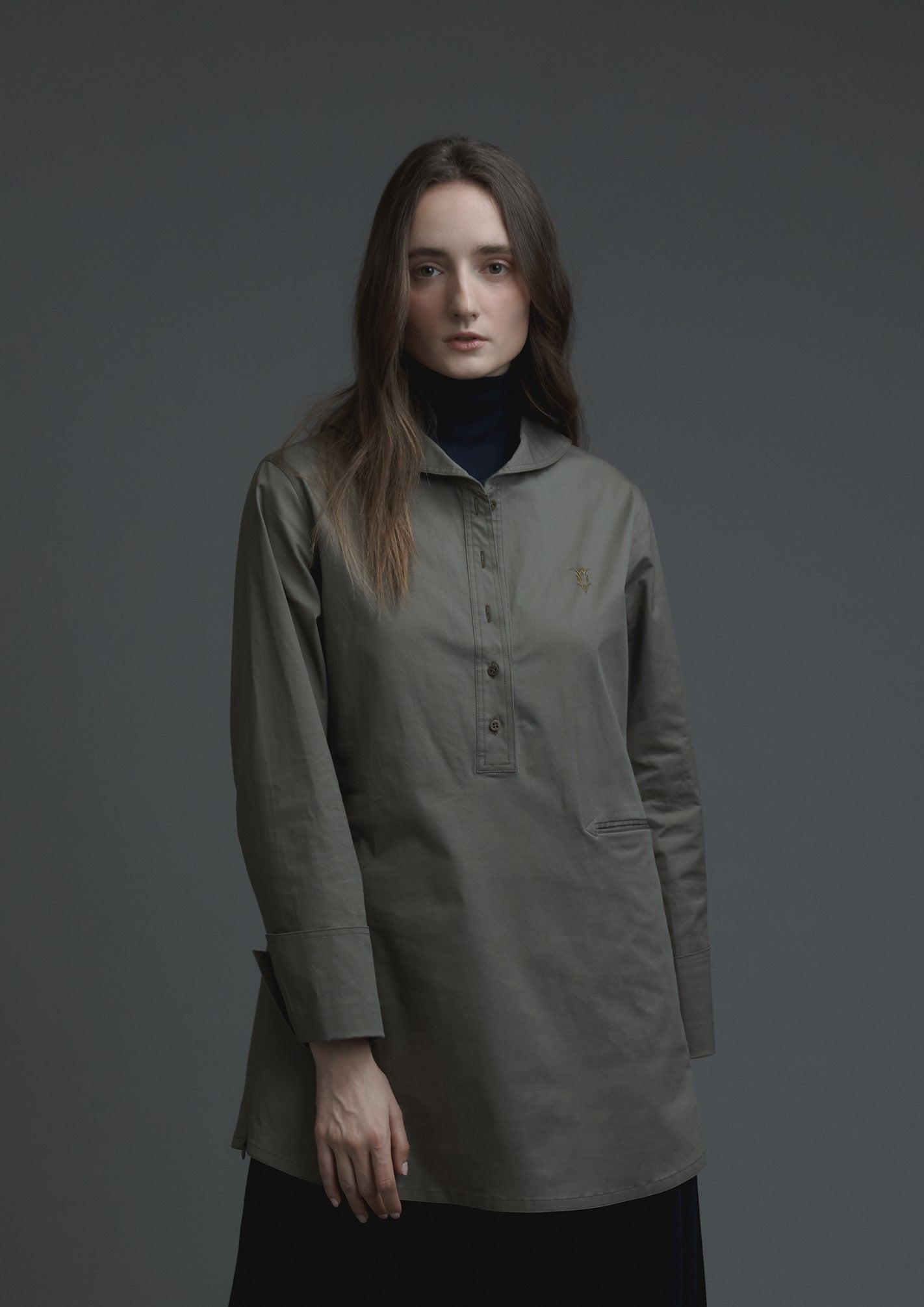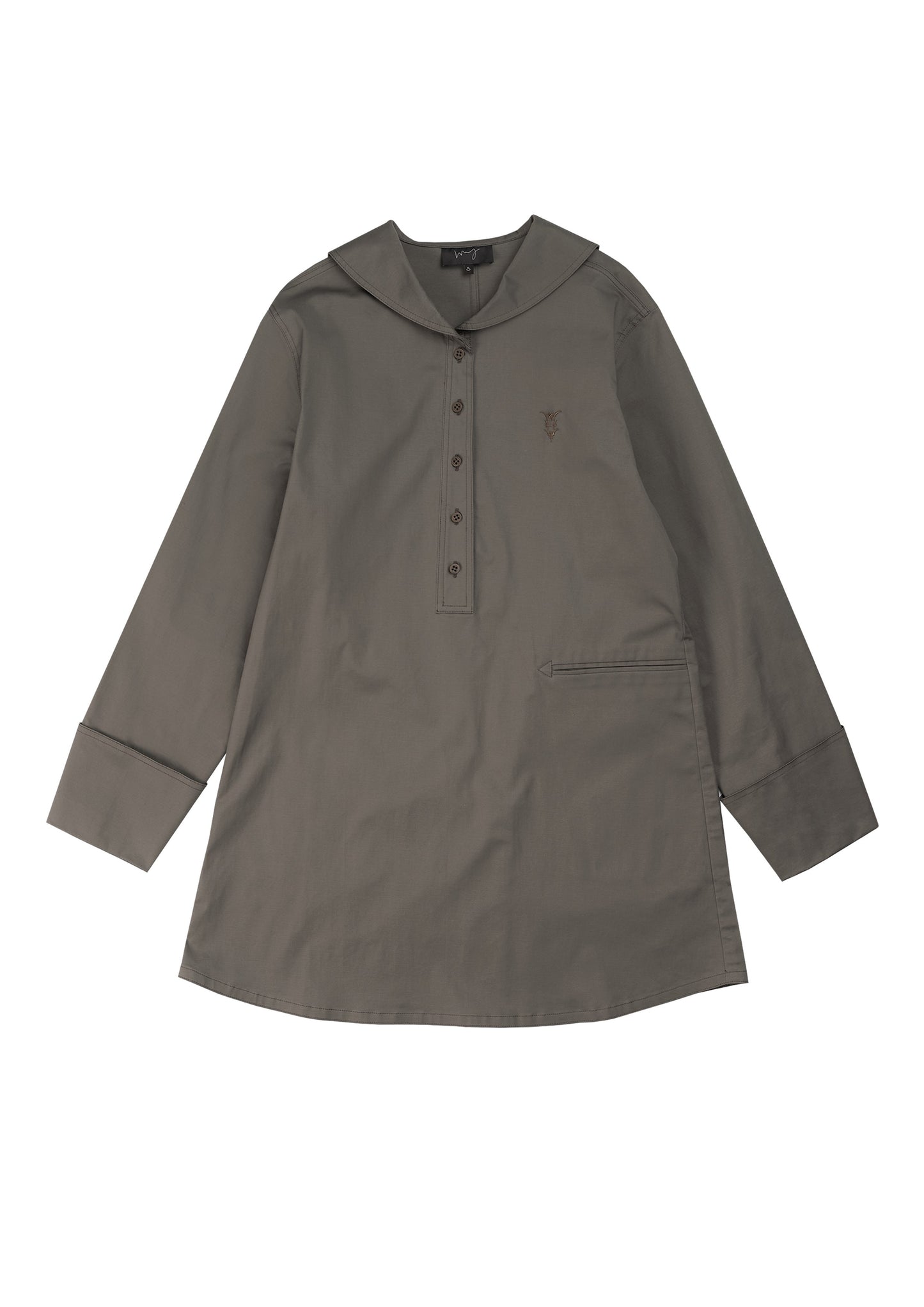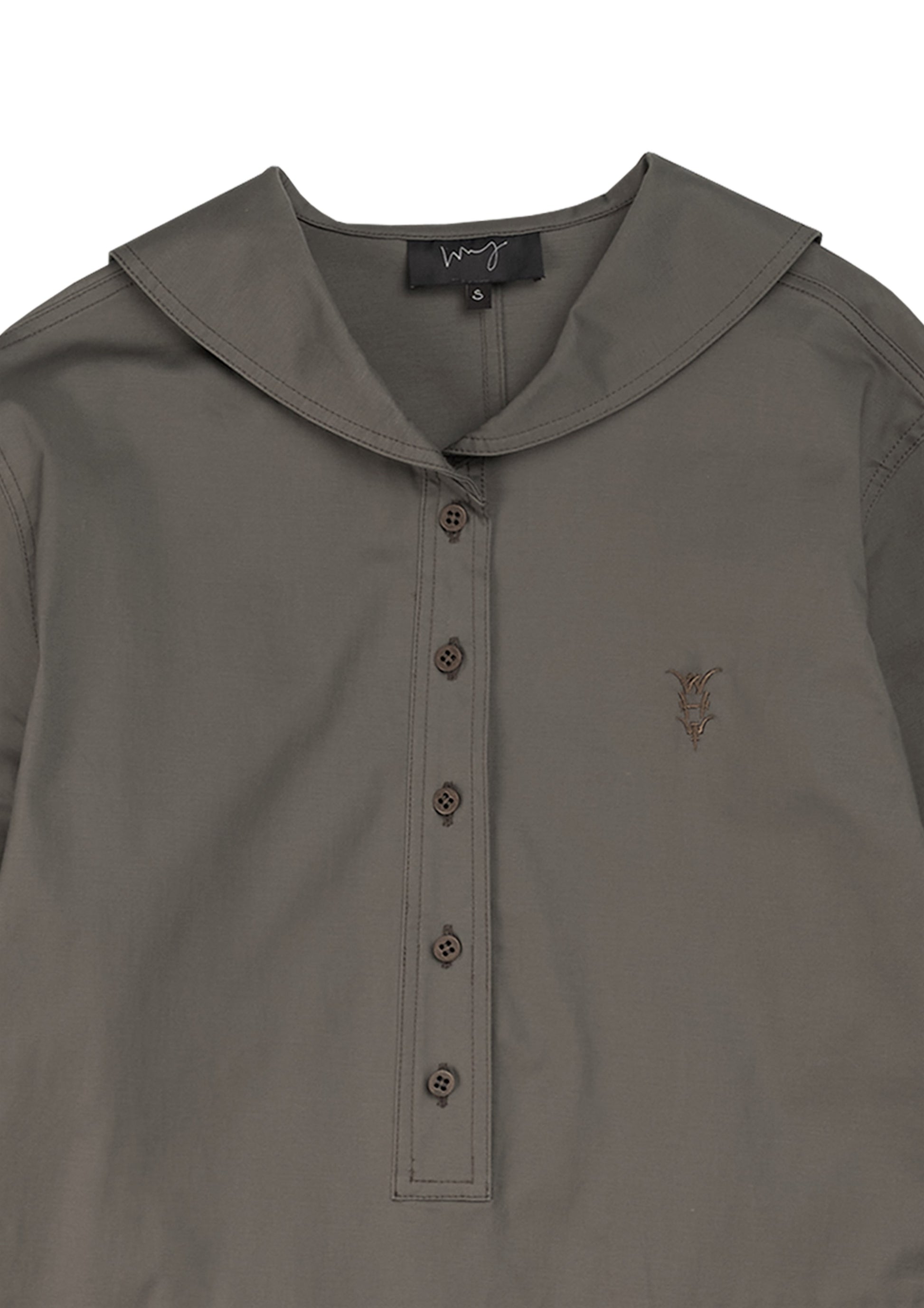 Embroidery logo sailor long top in army Japanese cotton