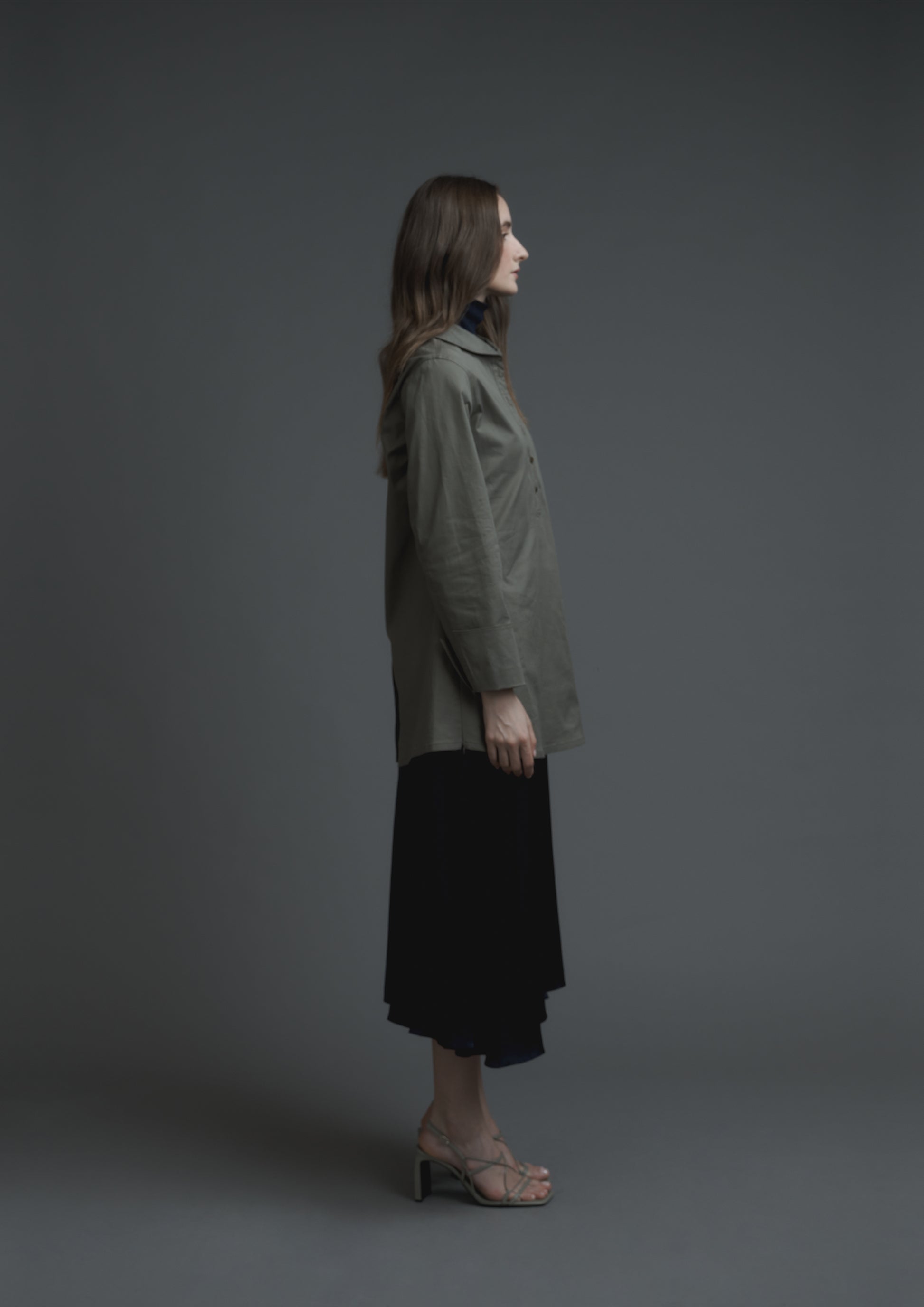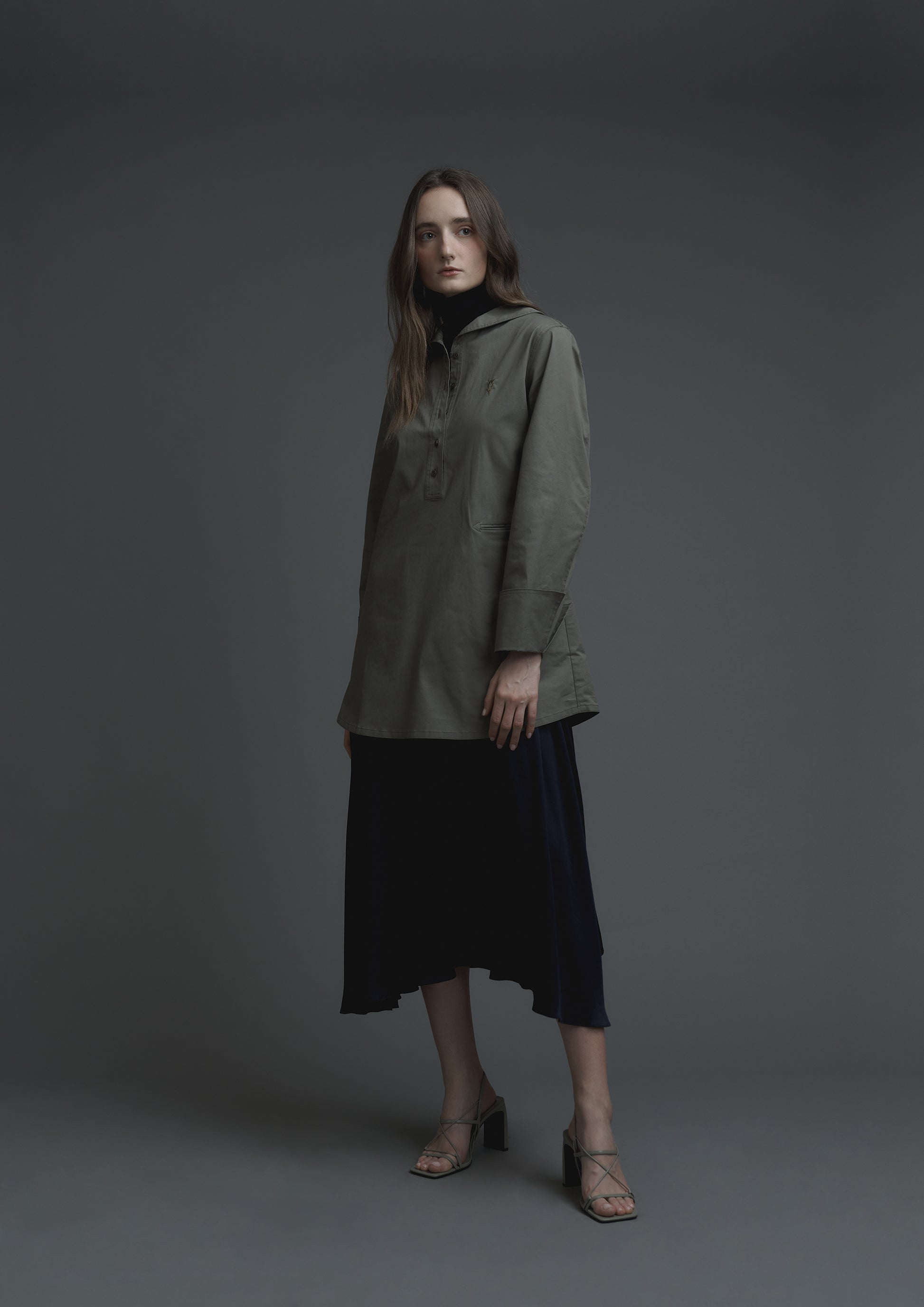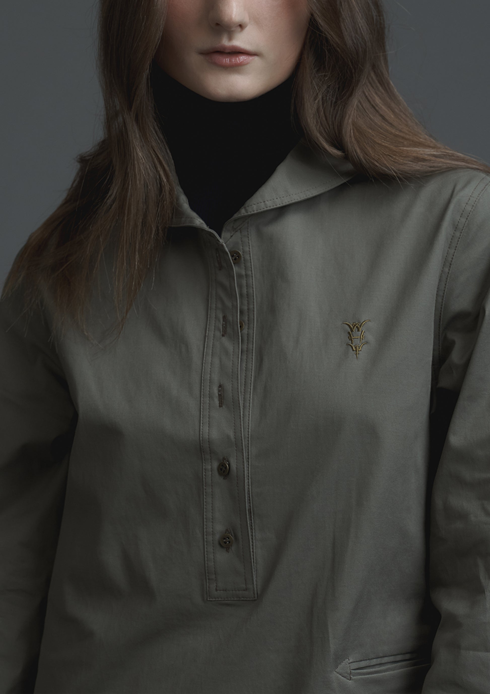Embroidery logo sailor long top in army Japanese cotton