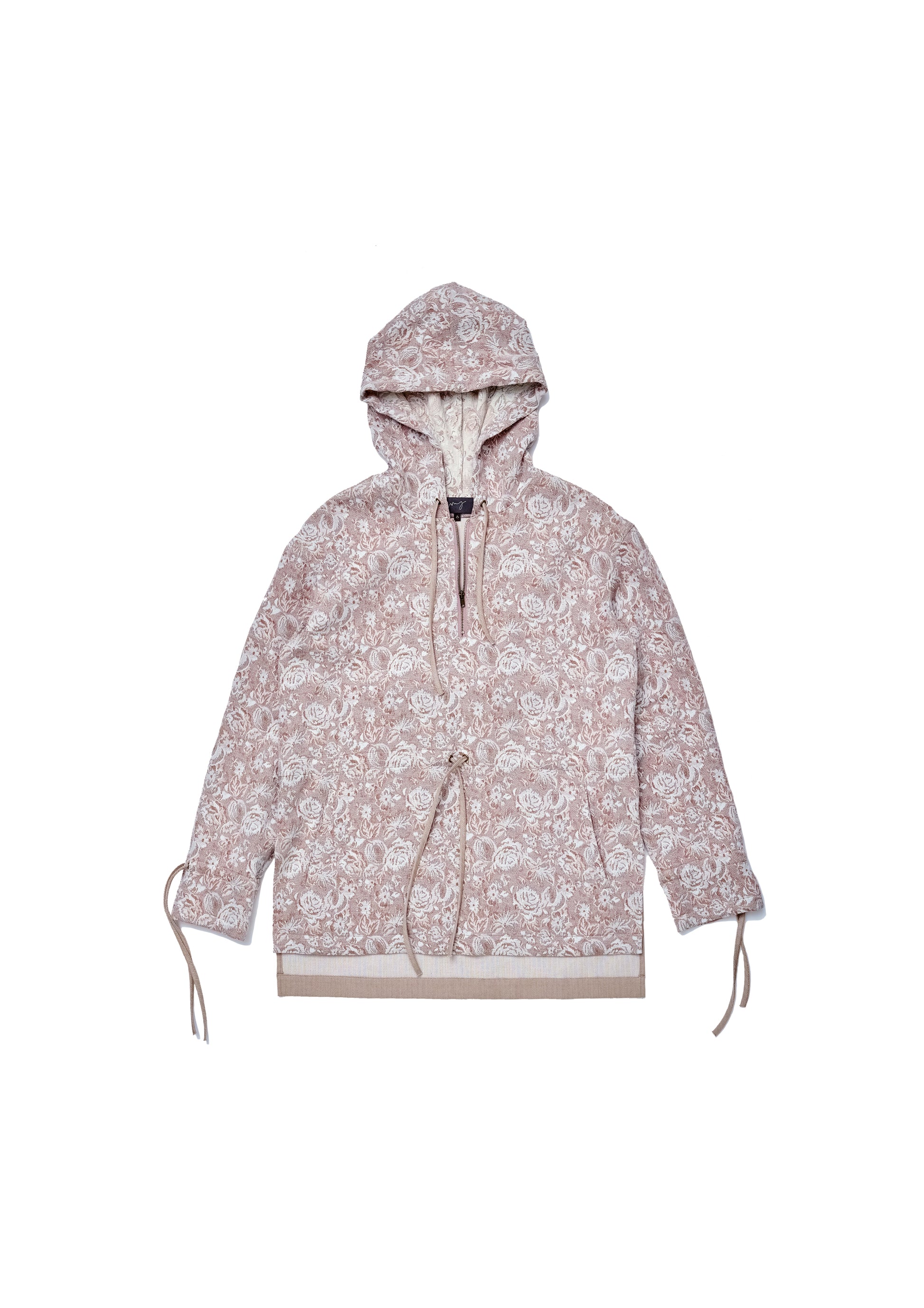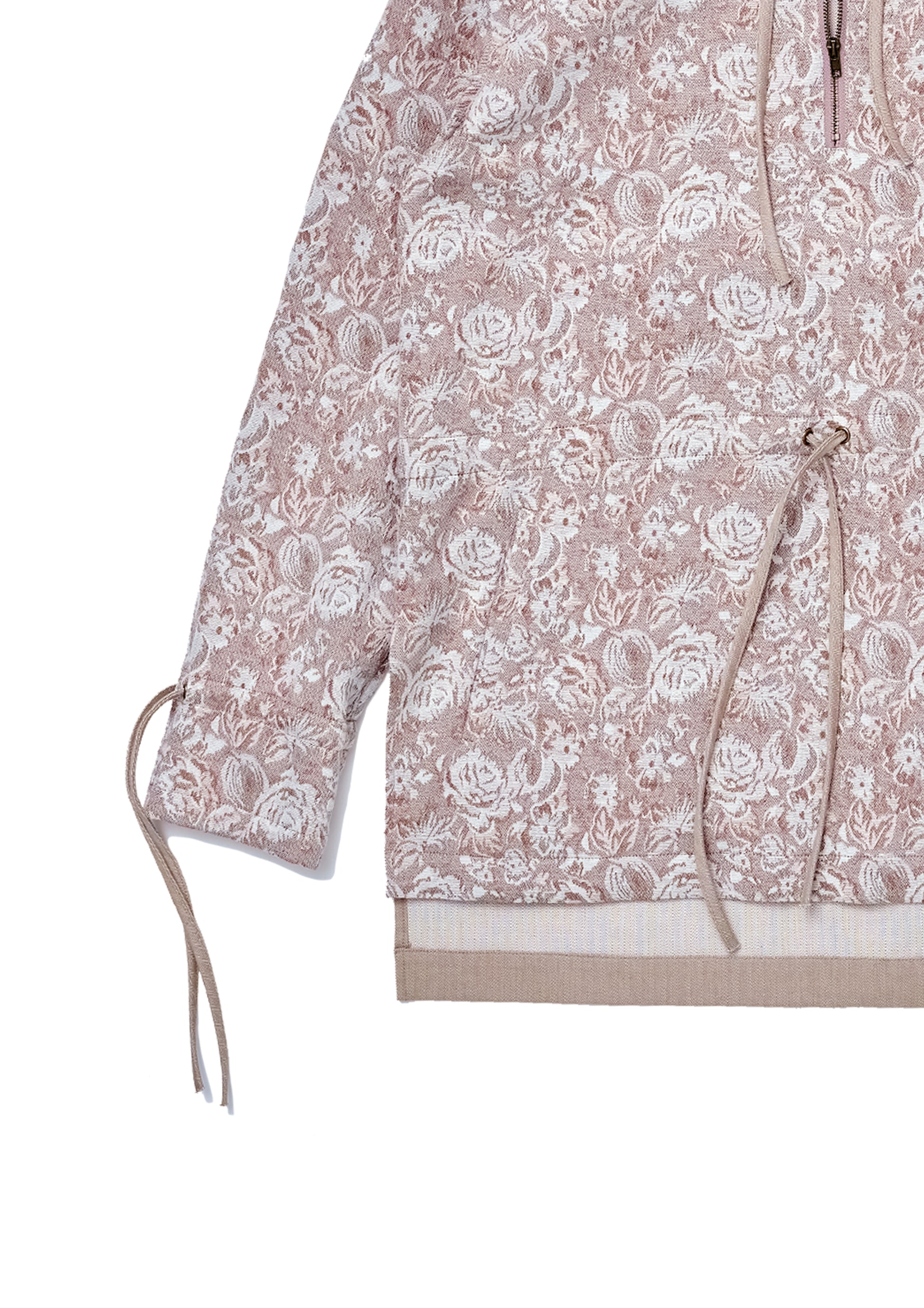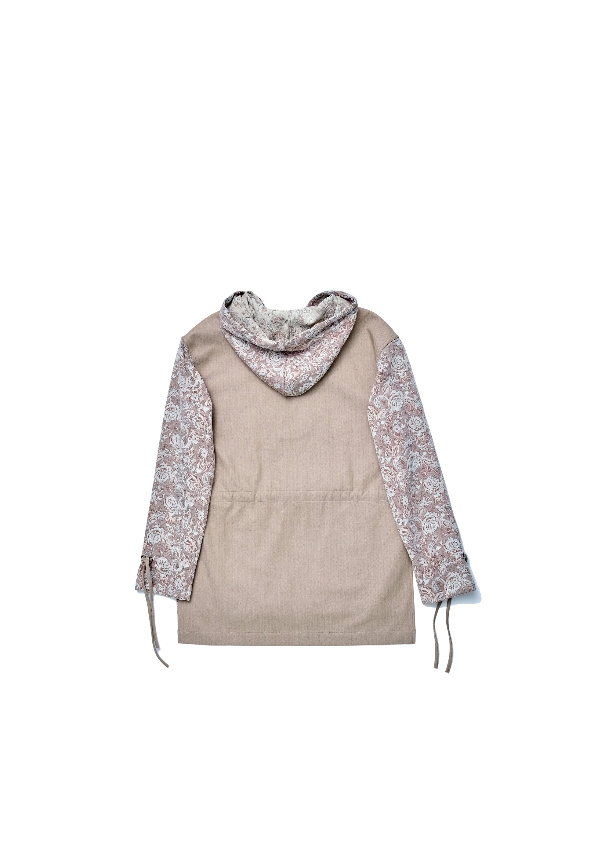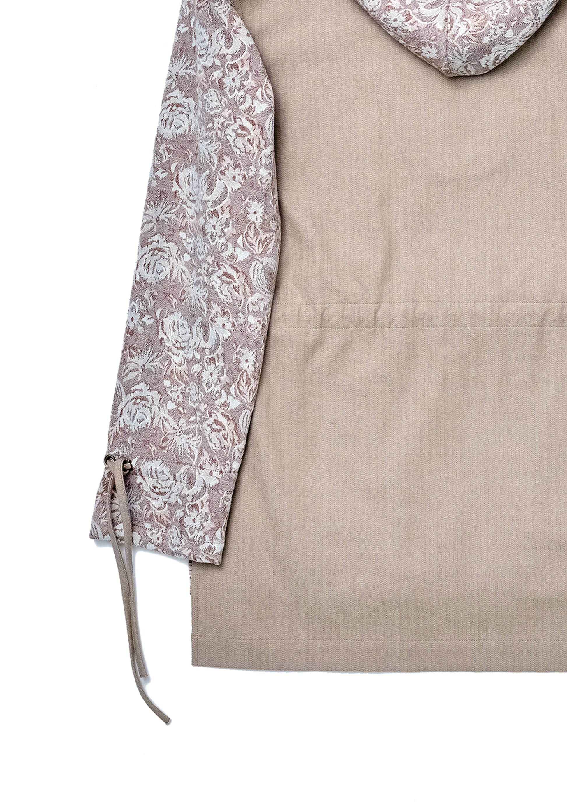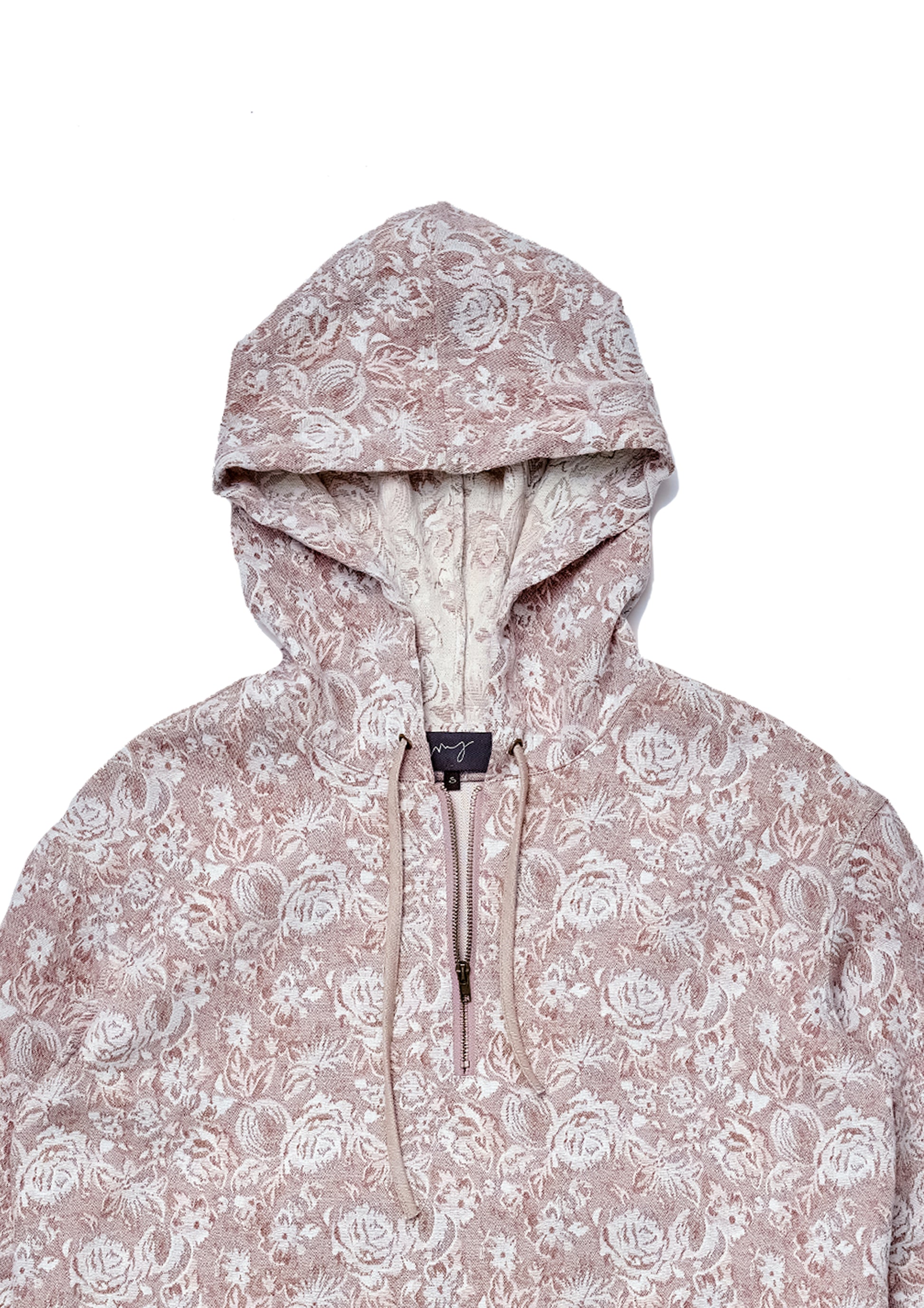 Floral jacquard patched herringbone woven hoodie in Sienna