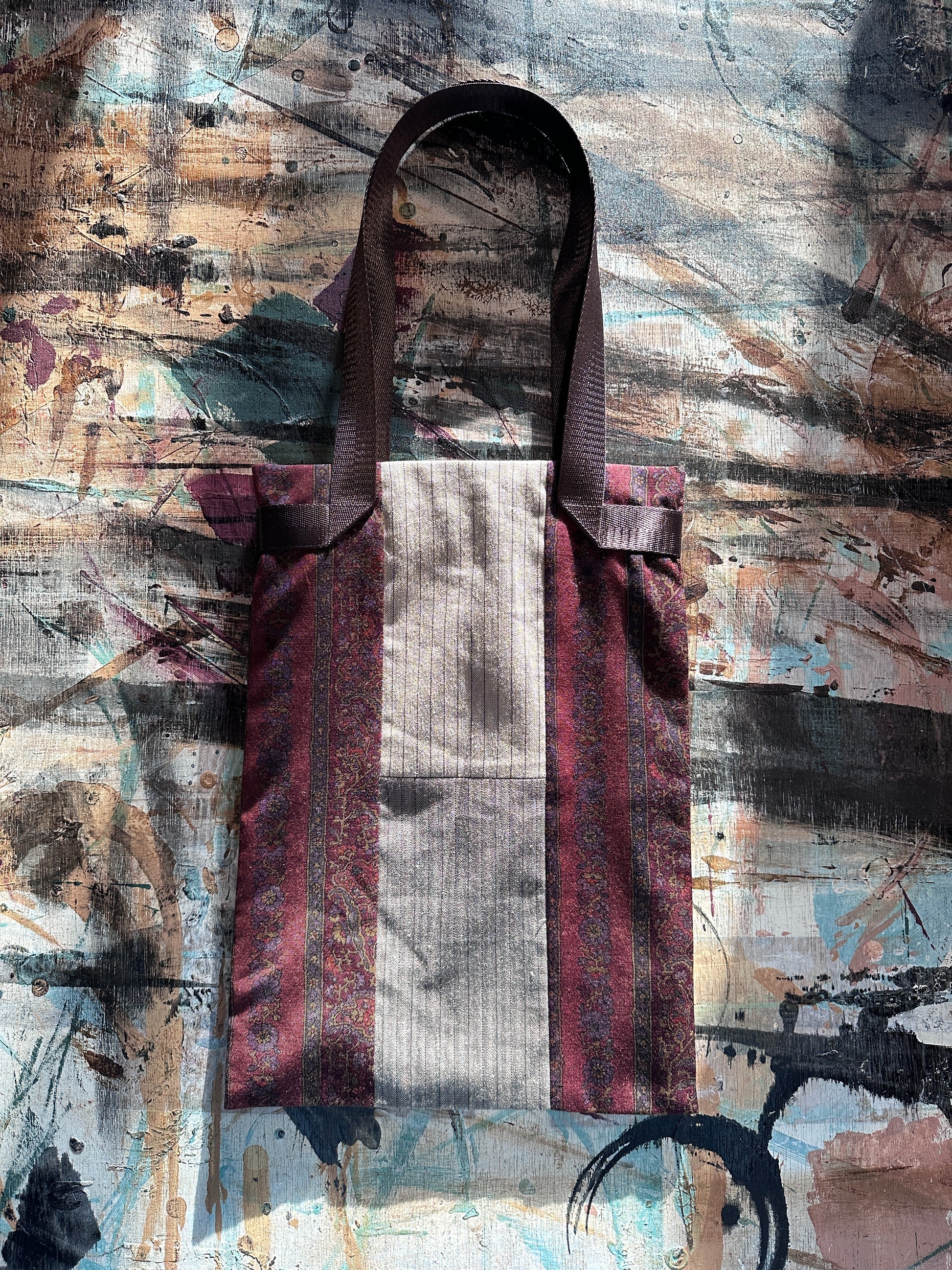 H A4 ipad/document tote crossover with UZfabric vintage kimono fabric