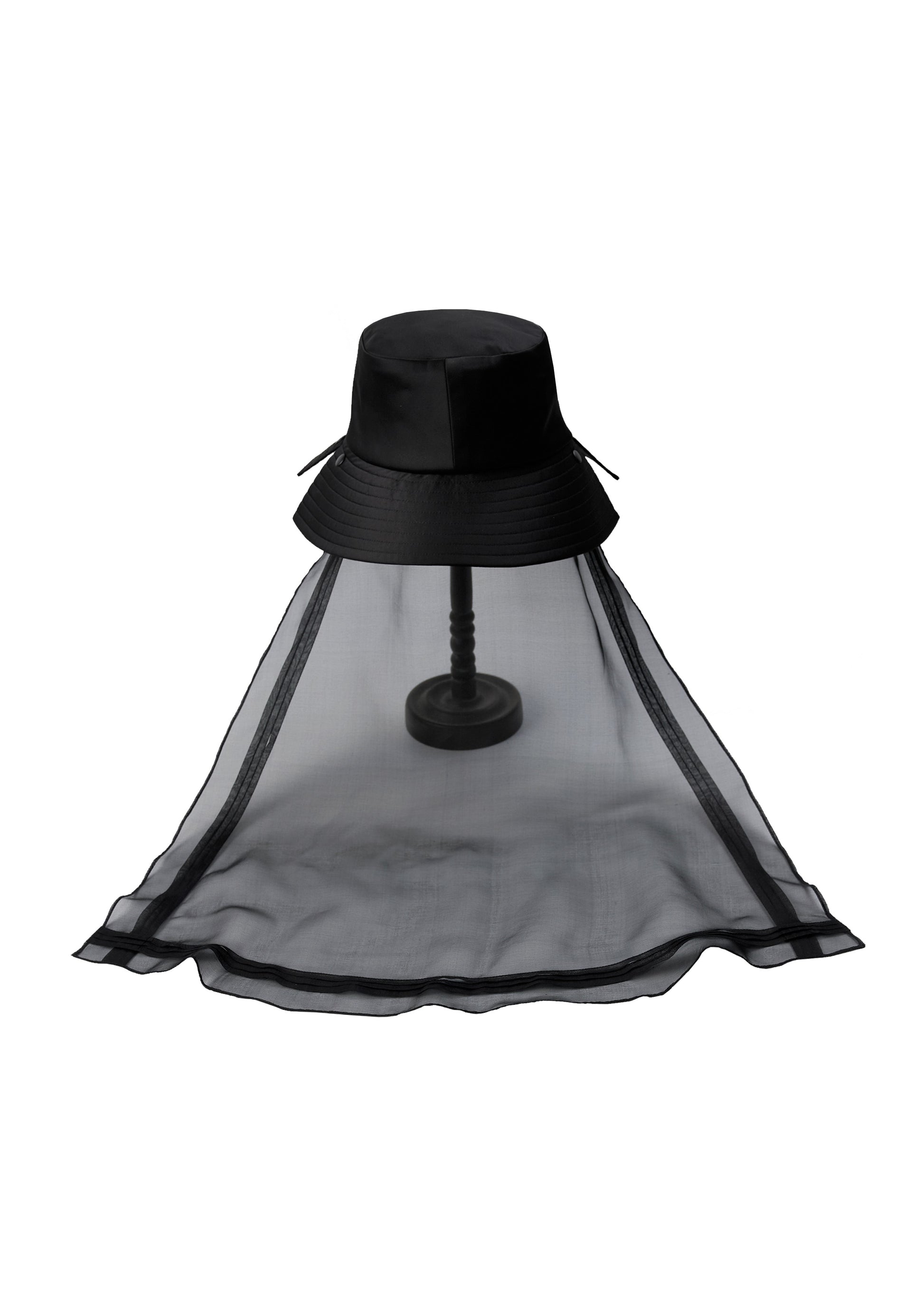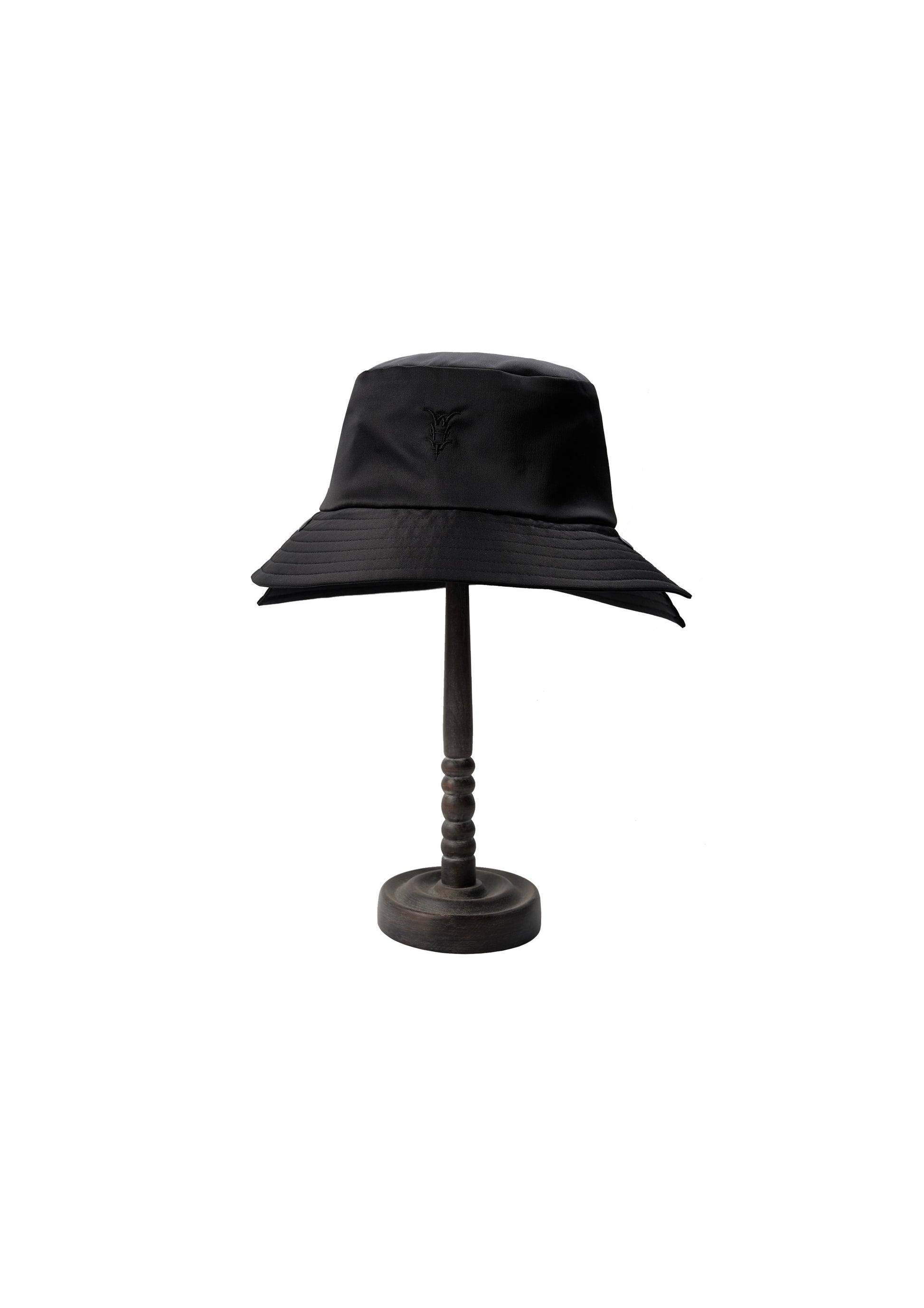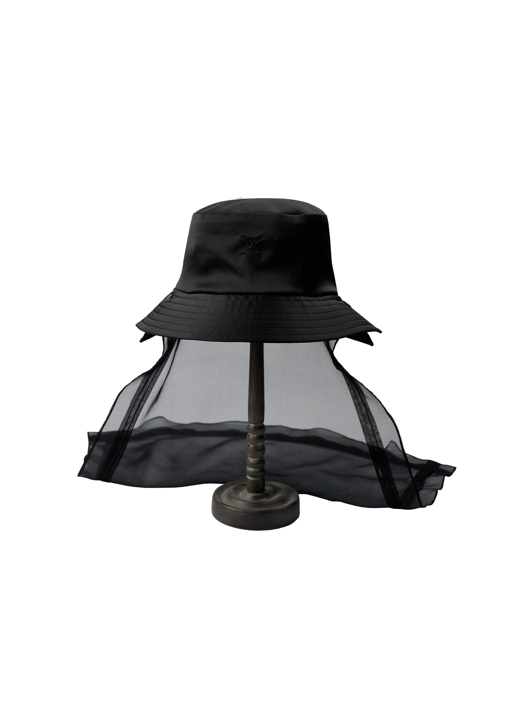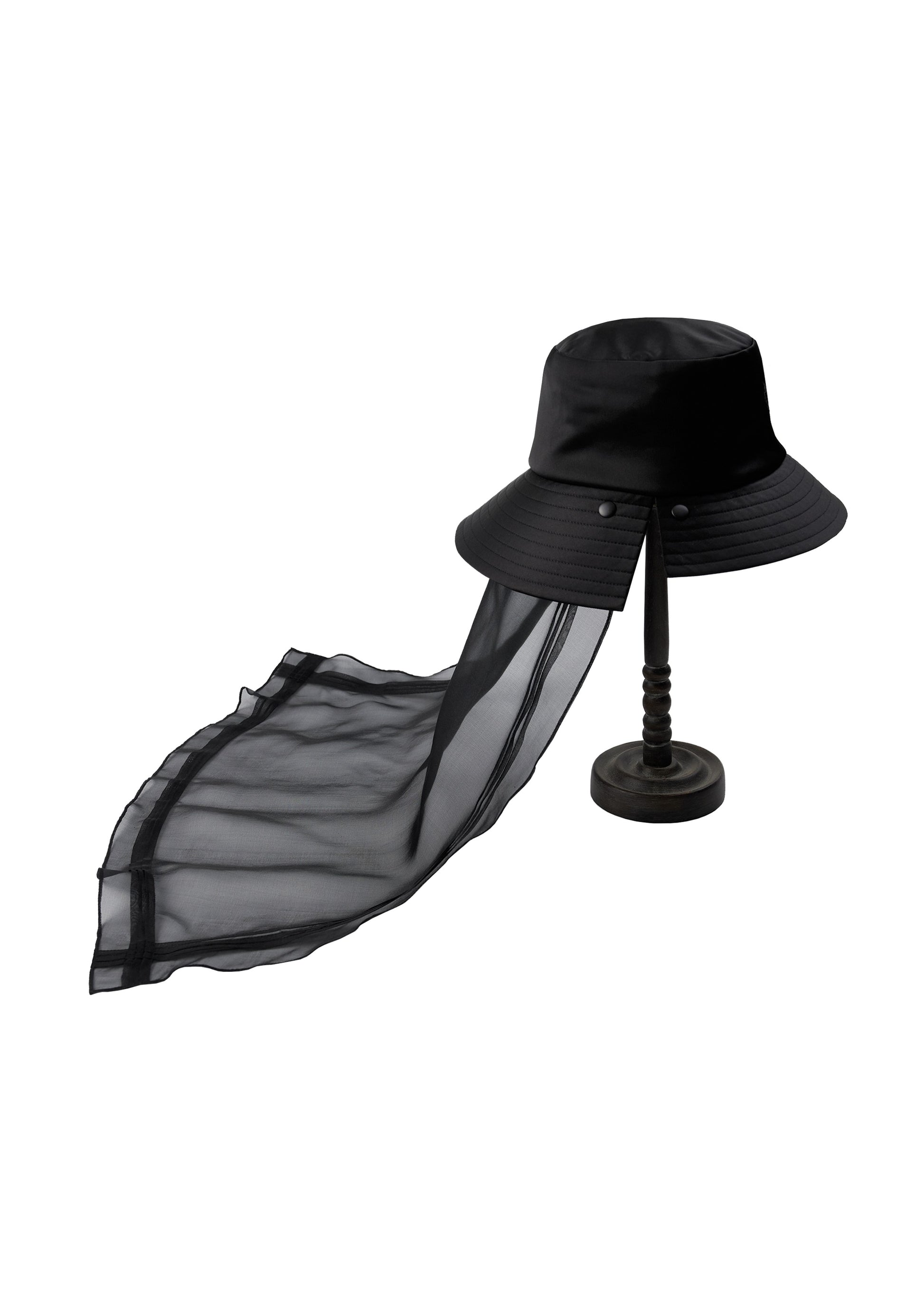 The black satin Nurse hat is supplied with an attachable silk organza cover, featuring embroidery logo details.