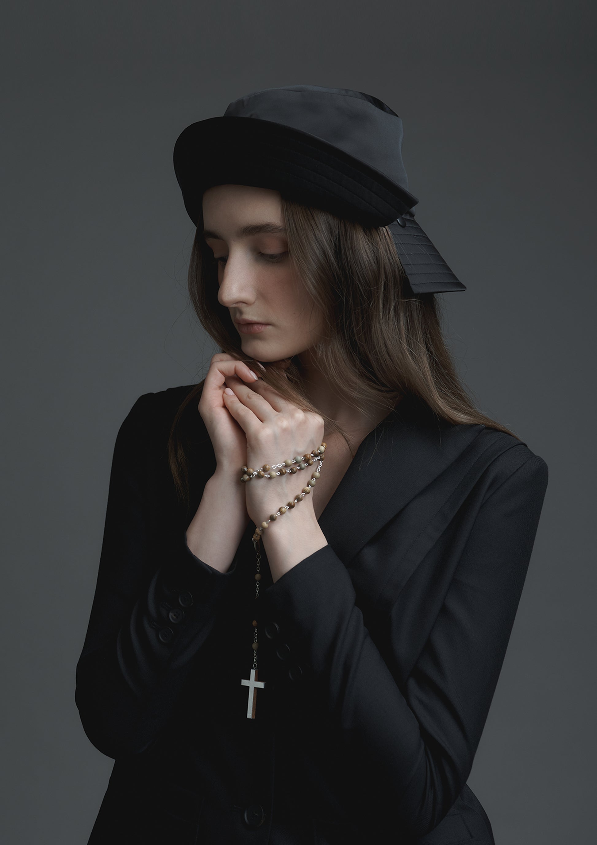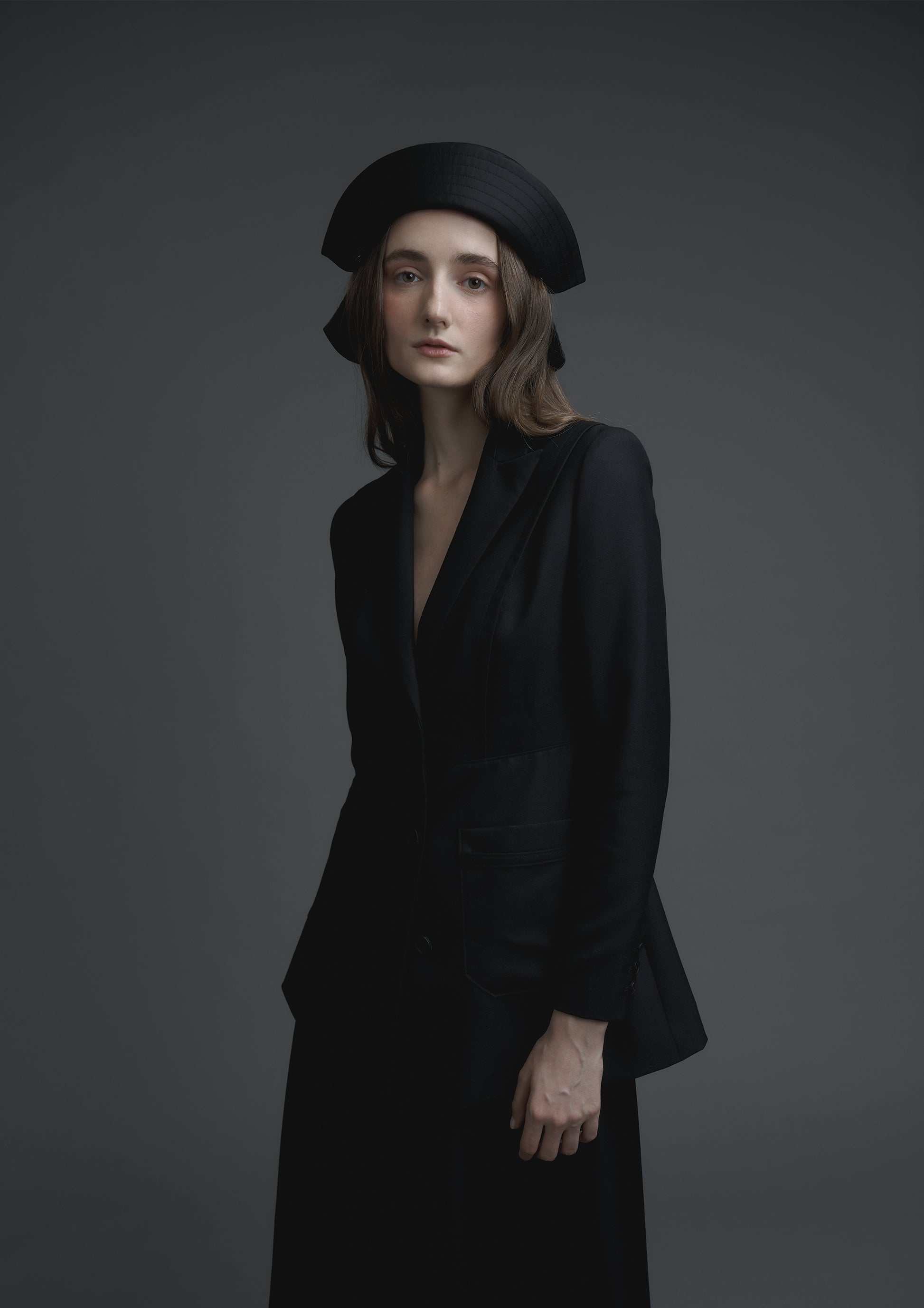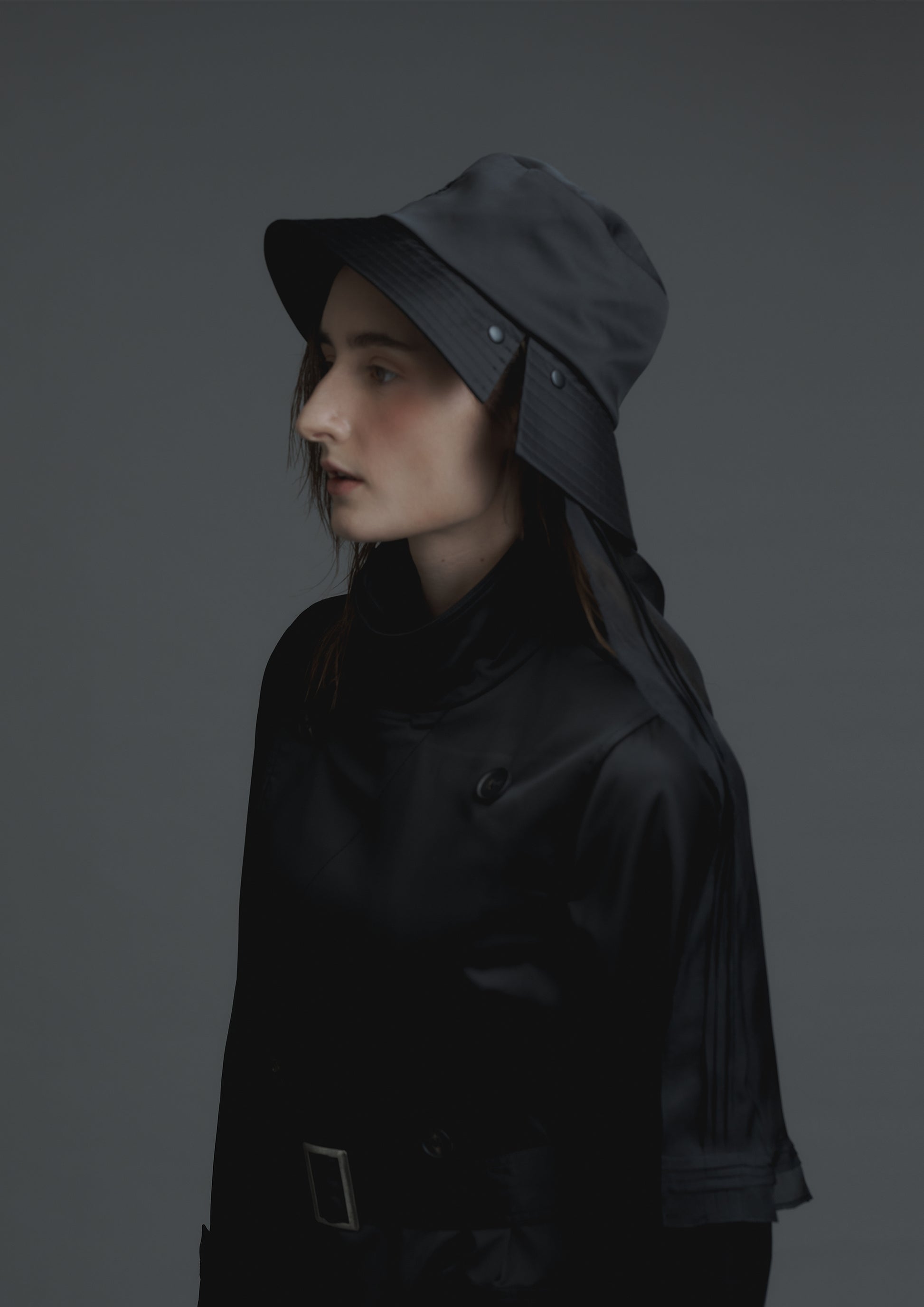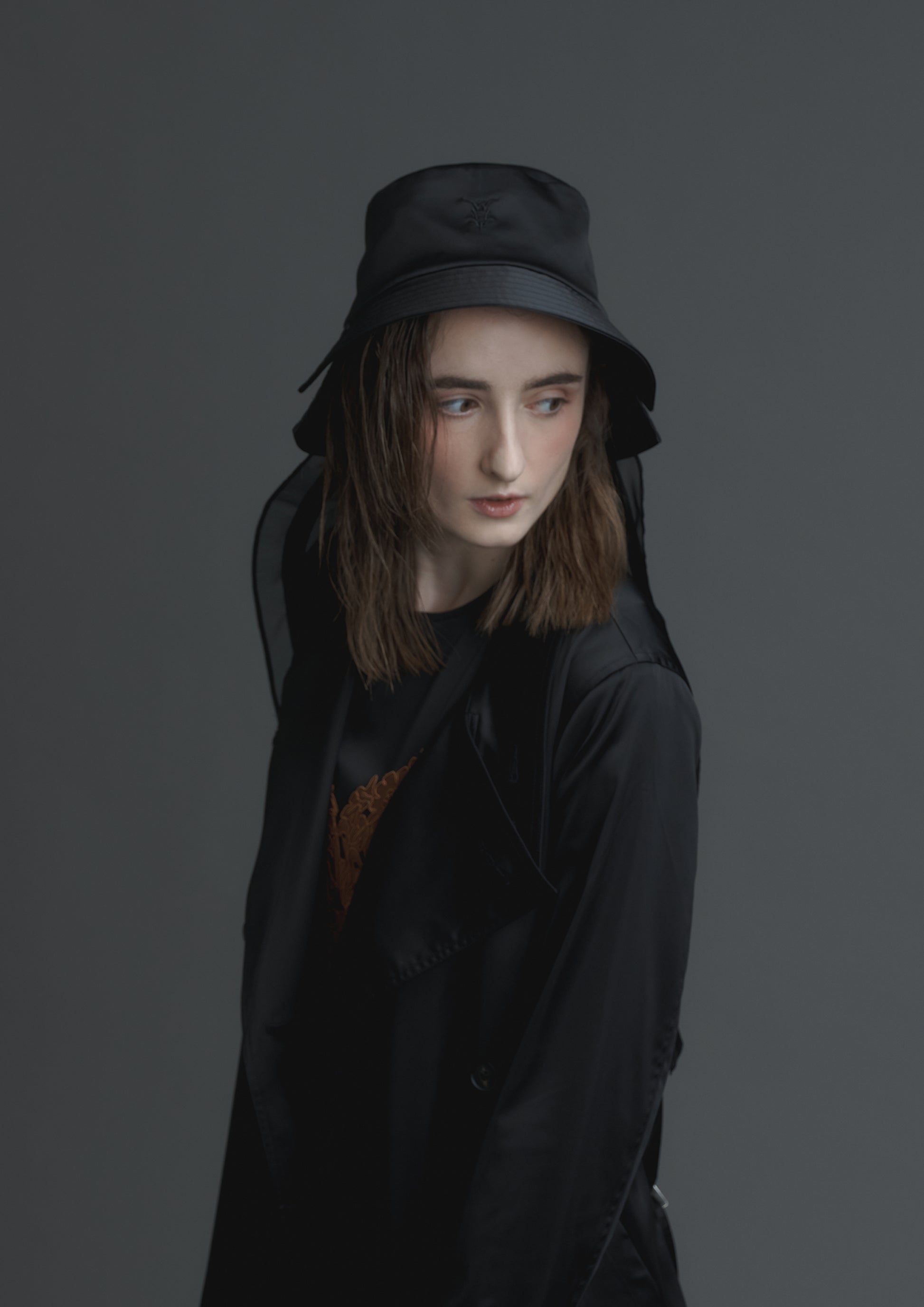 The black satin Nurse hat is supplied with an attachable silk organza cover, featuring embroidery logo details.