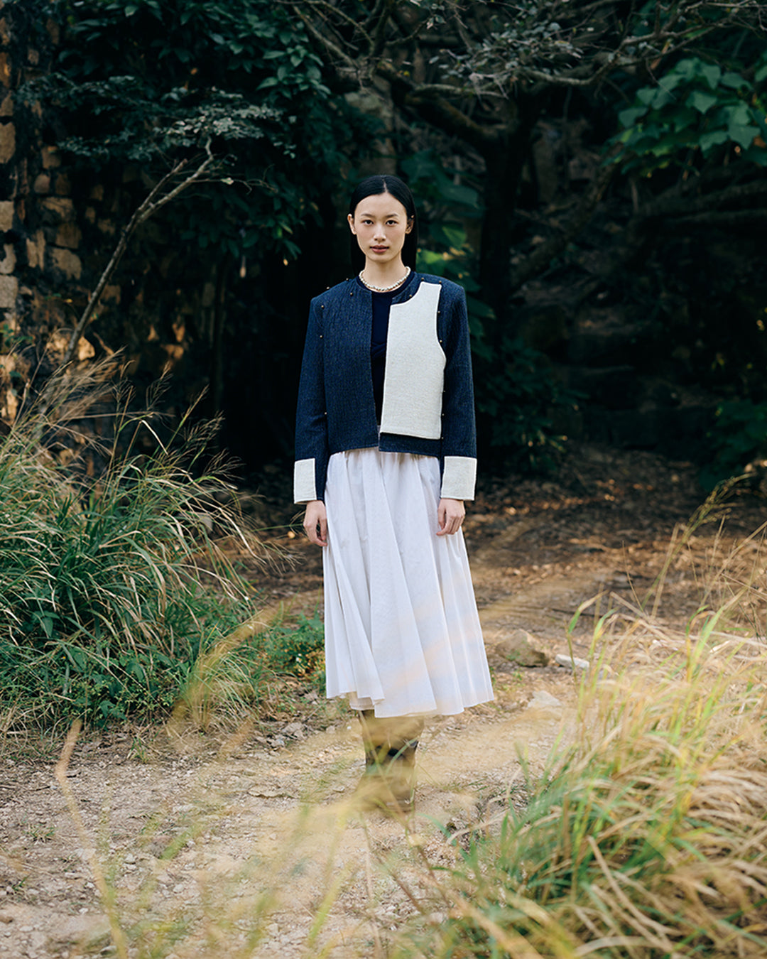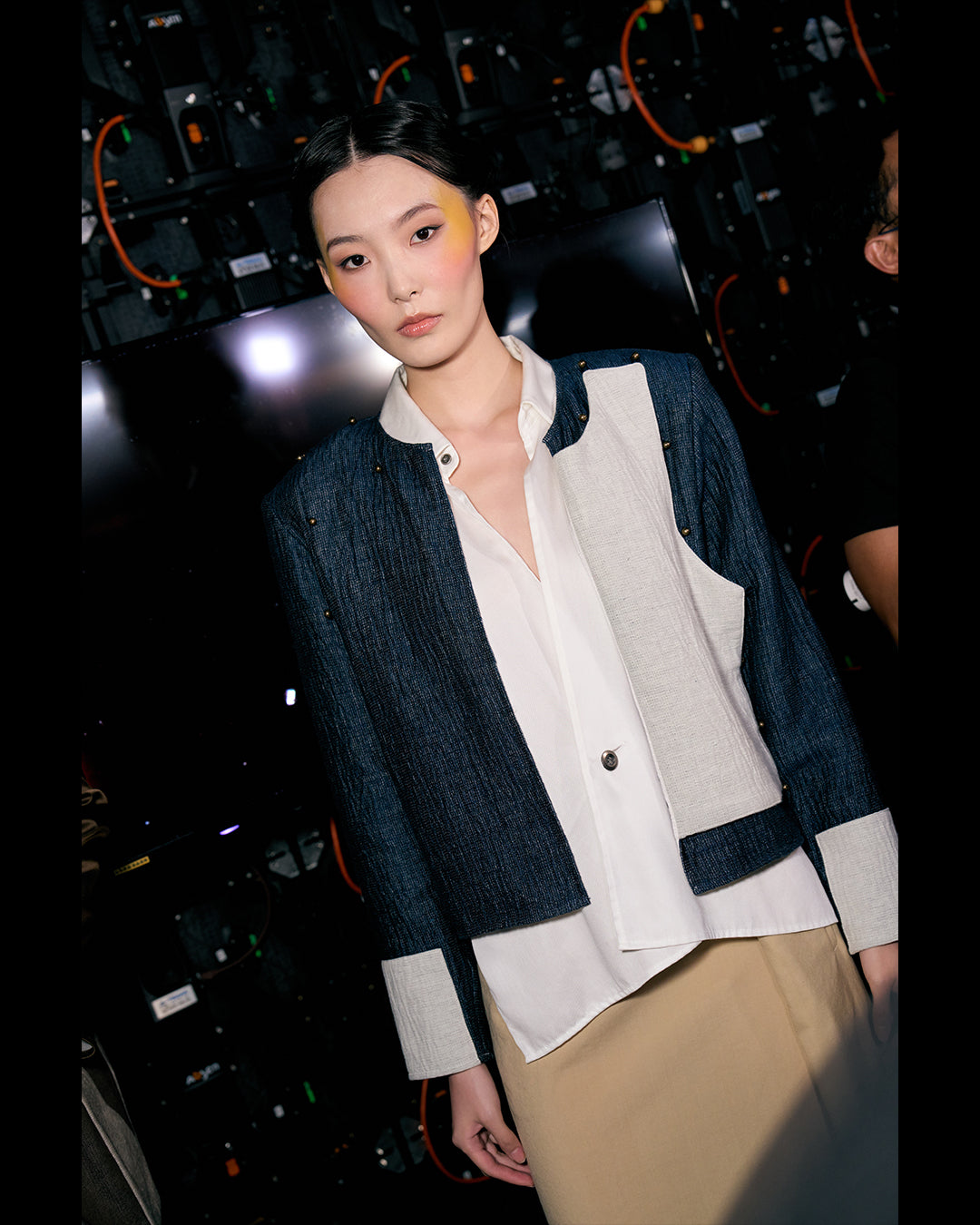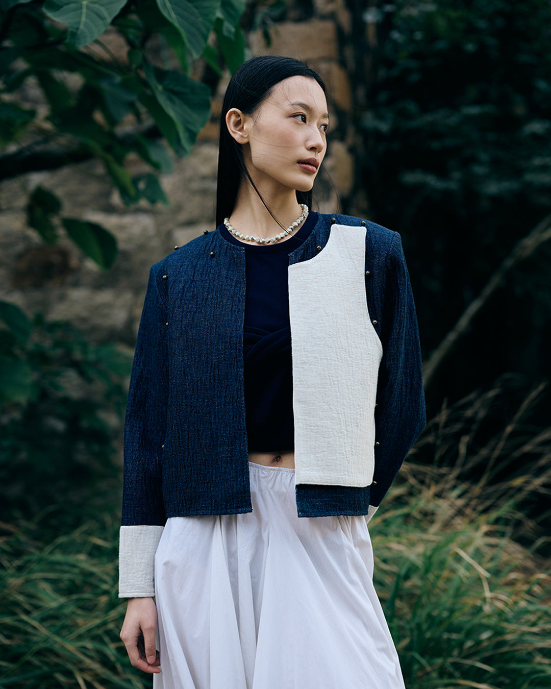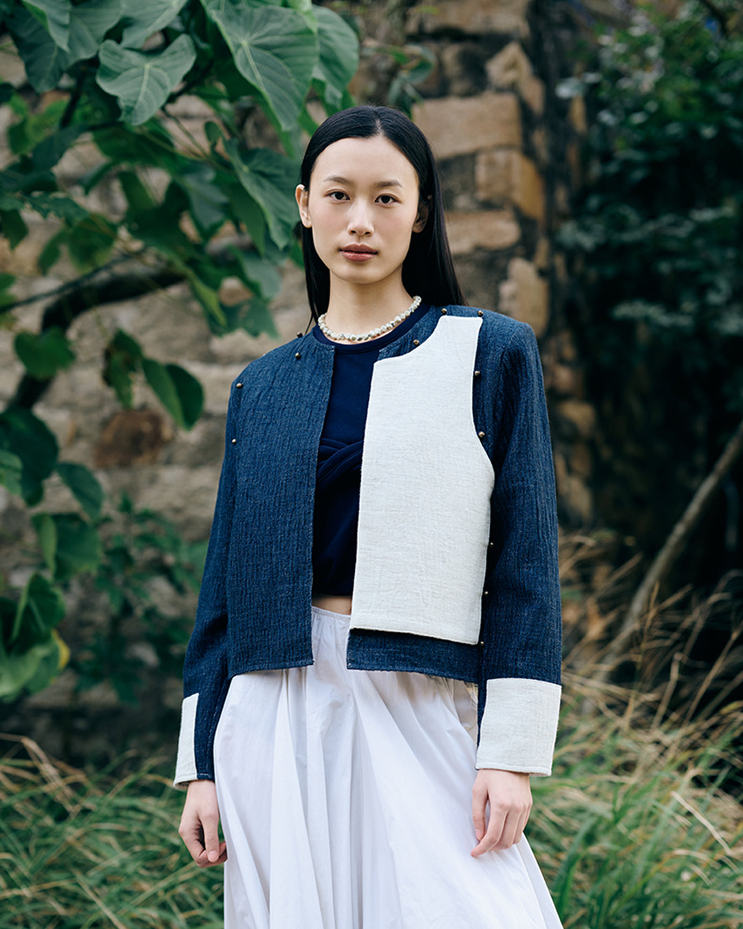 Expertly crafted and inspired by Chinese Indigenous clothing, the Tribe blazer boasts a unique patched panel and button up details. Designed with shoulder pads and lined with double gauze and bemberg, this black cotton linen blazer offers both style and comfort. Upgrade your wardrobe with this one-of-a-kind piece.