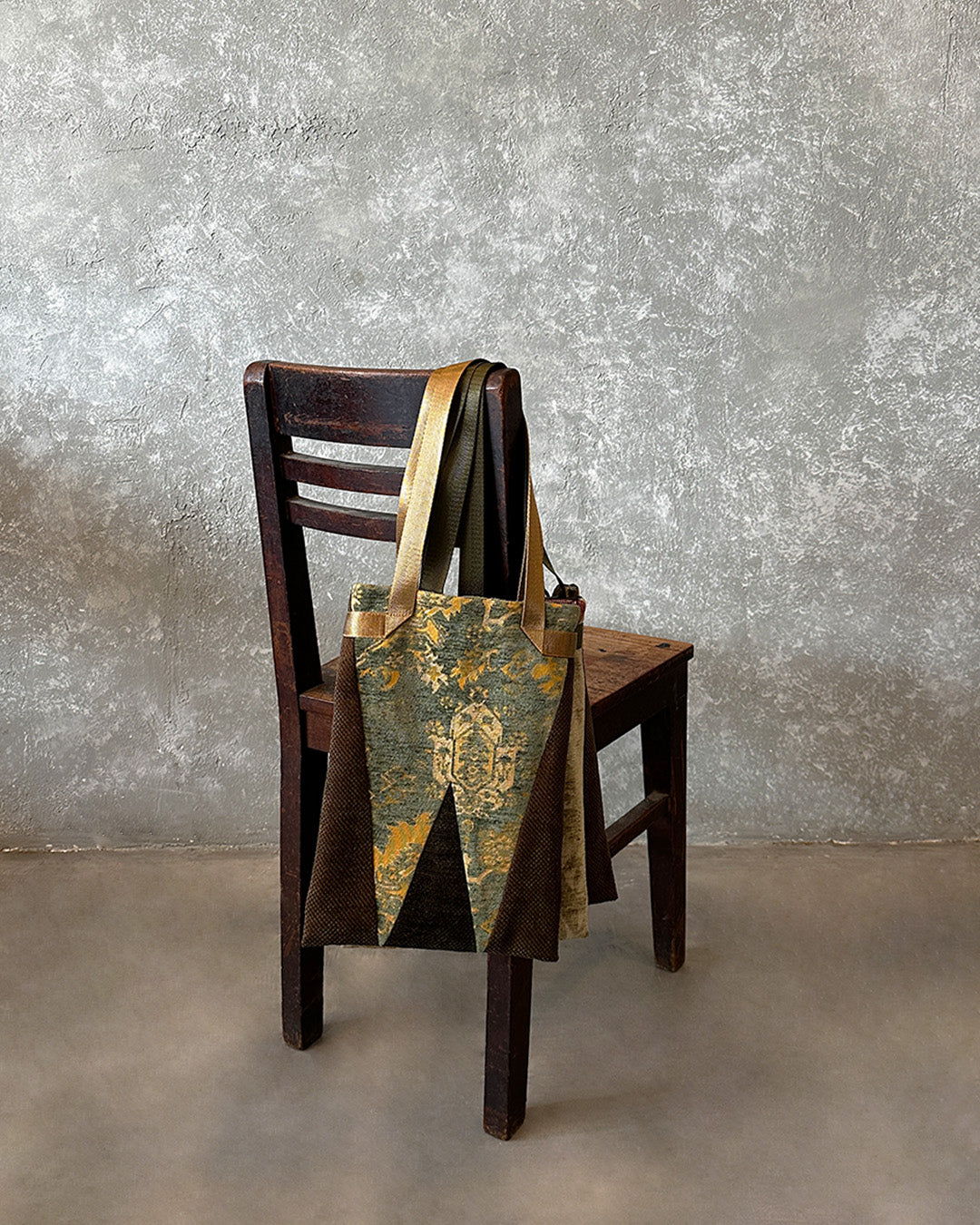 This A4-sized WHY iPad / document tote is made with limited stocks of vintage furniture cotton velvet fabrics, and includes hidden pockets for additional storage. Expertly crafted in Hong Kong, it's the perfect choice for carrying documents or laptops while making a stylish statement with its unique W shape patch on the front panel.