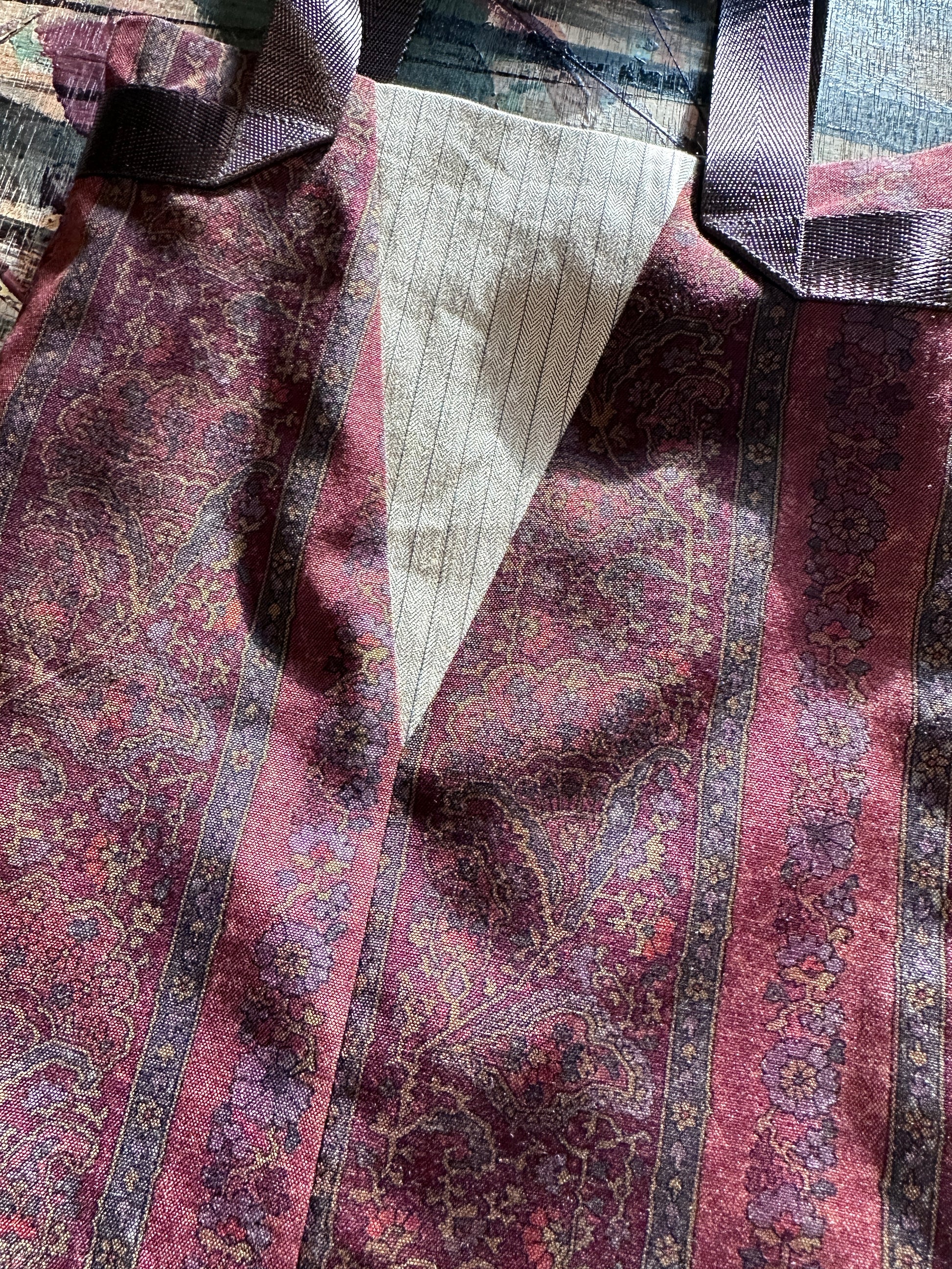 Y A4 ipad/document tote crossover with UZfabric vintage kimono fabric