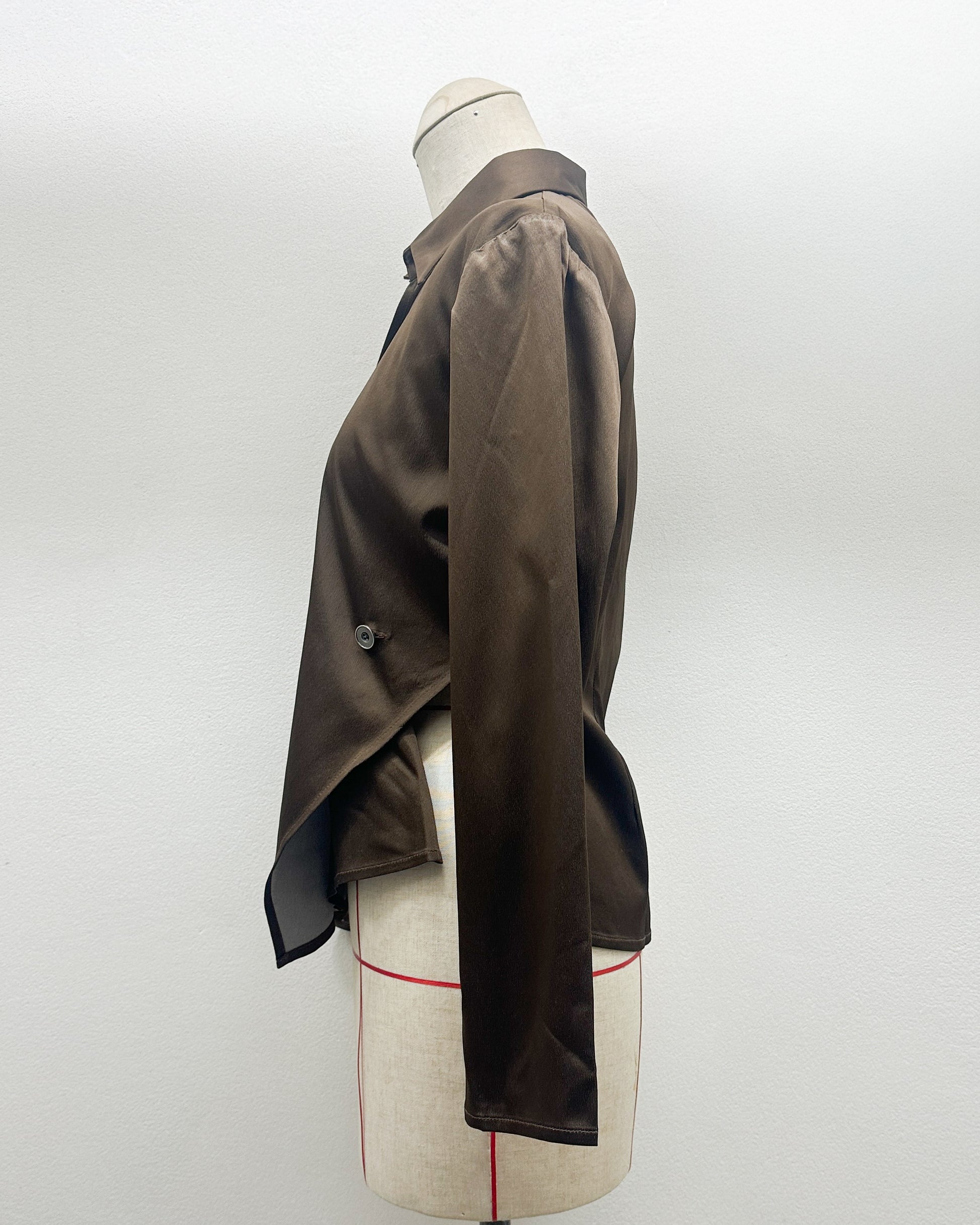 - Features a distinctive cross-front panel design with 2 statement buttons, creating a sleek, asymmetrical look inspired by classic Hanfu and Oriental aesthetics