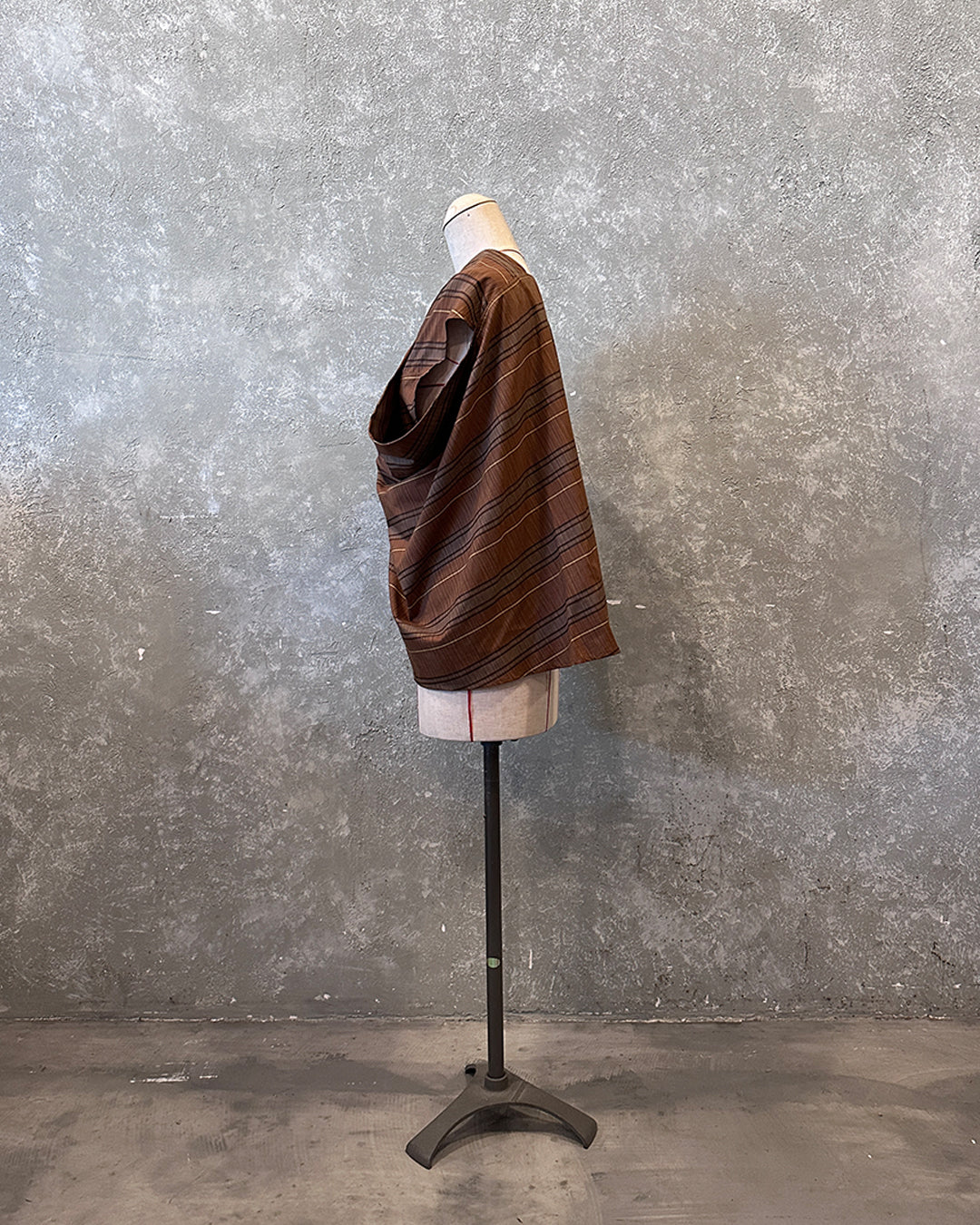 Influenced by traditional kimono fashion, this top features a unique overlap design that allows for versatile styling with or without a belt. The bow design can be achieved with the use of tape, making this piece truly one-of-a-kind.