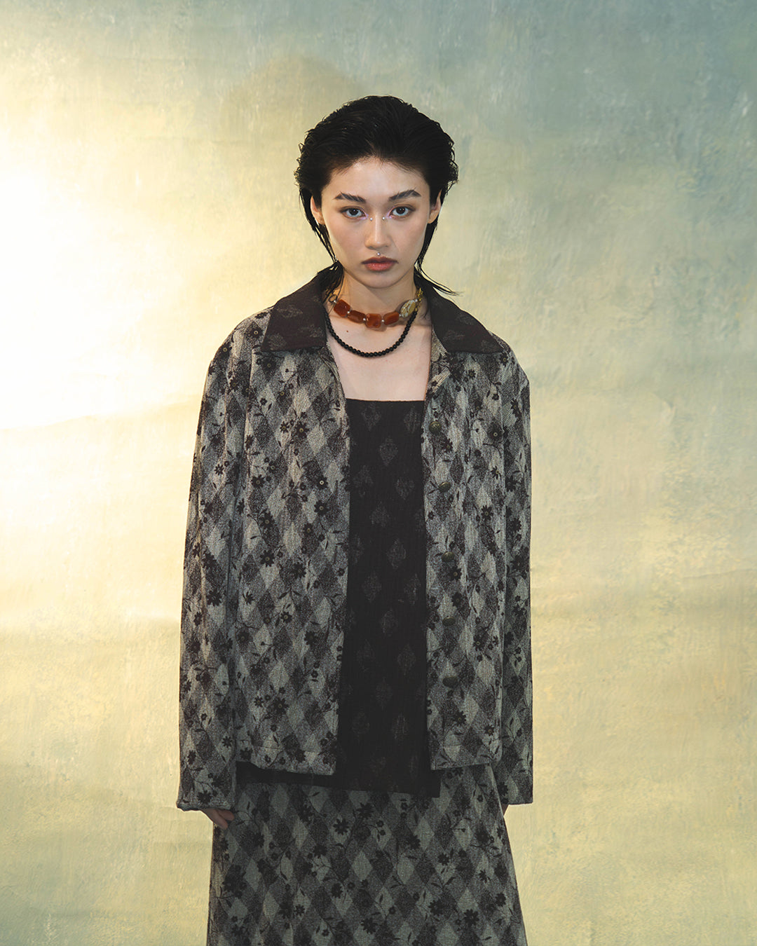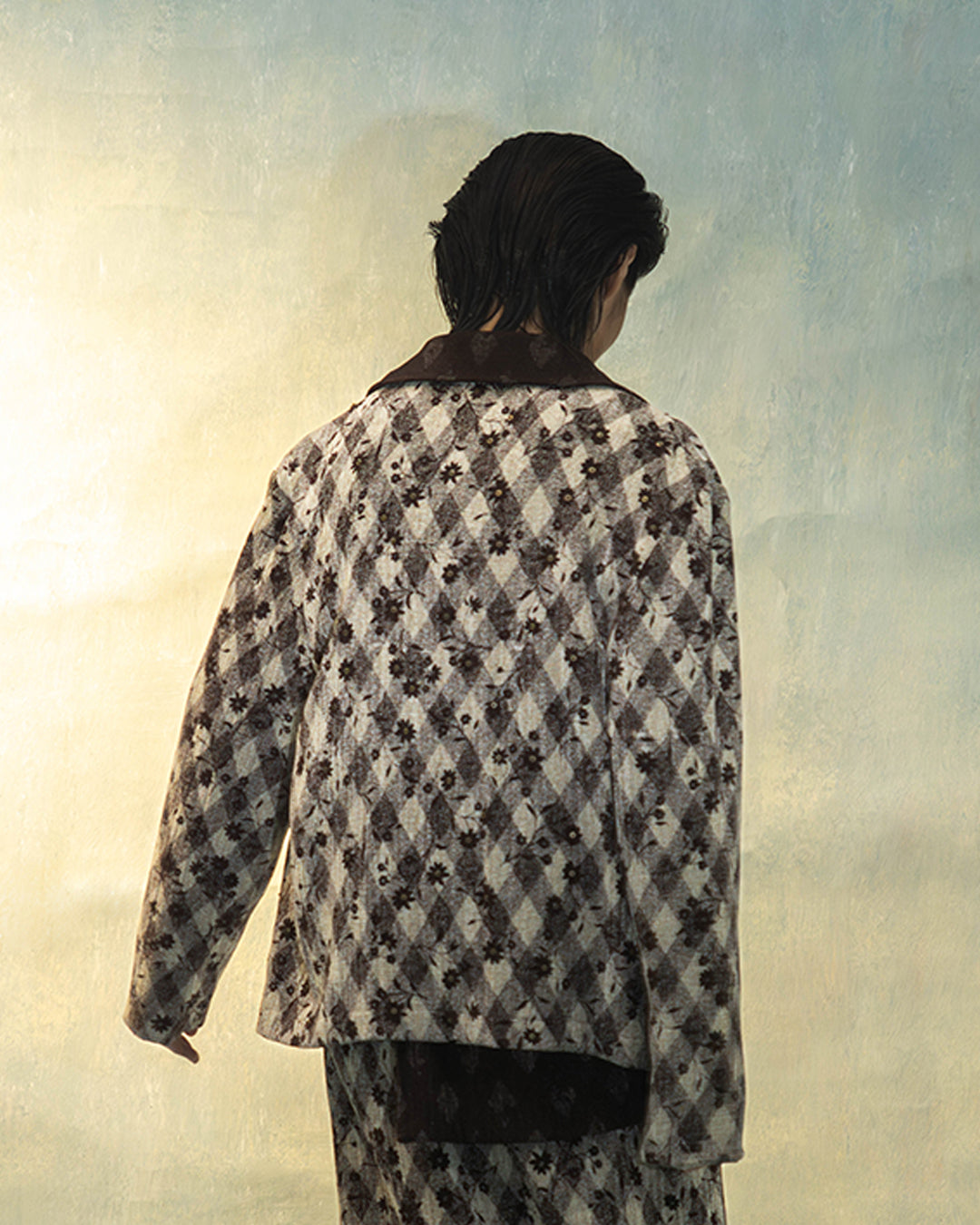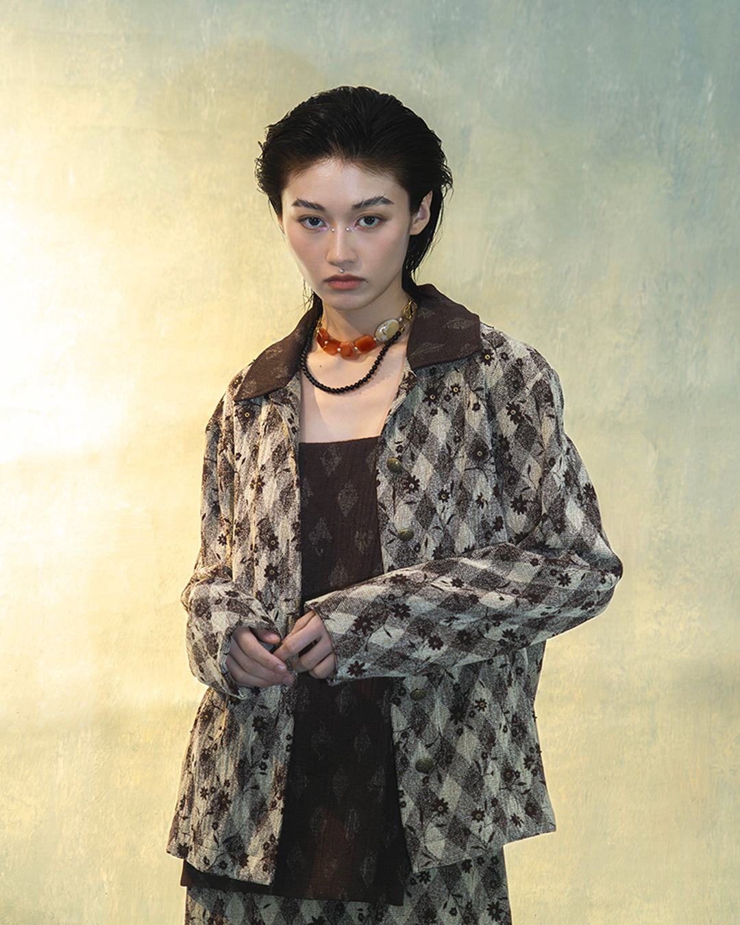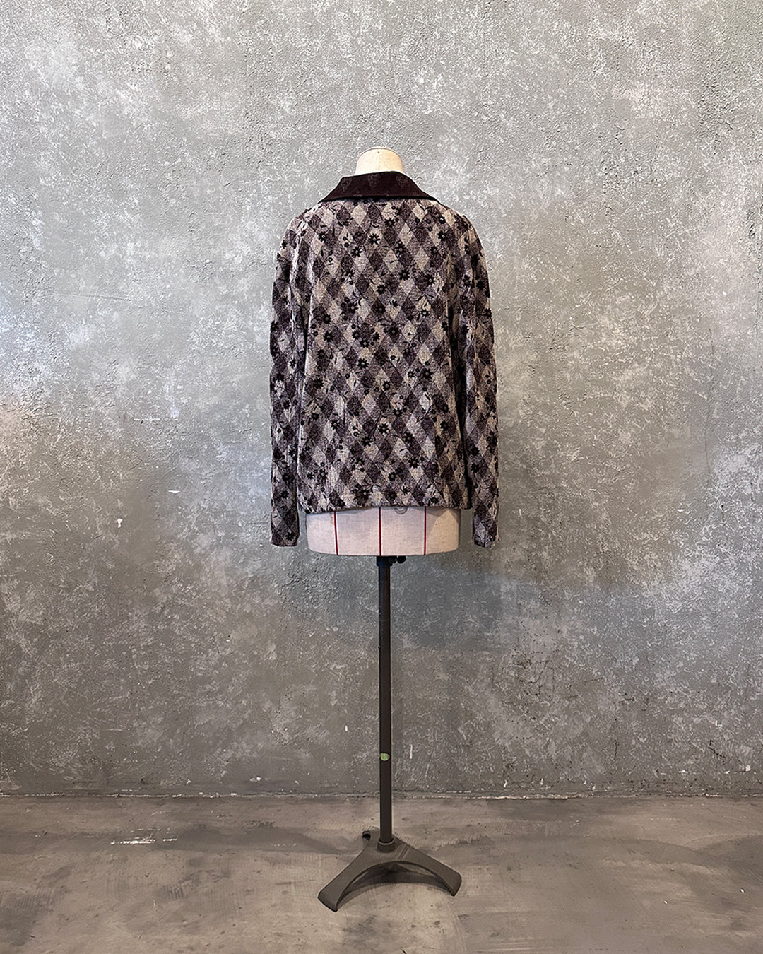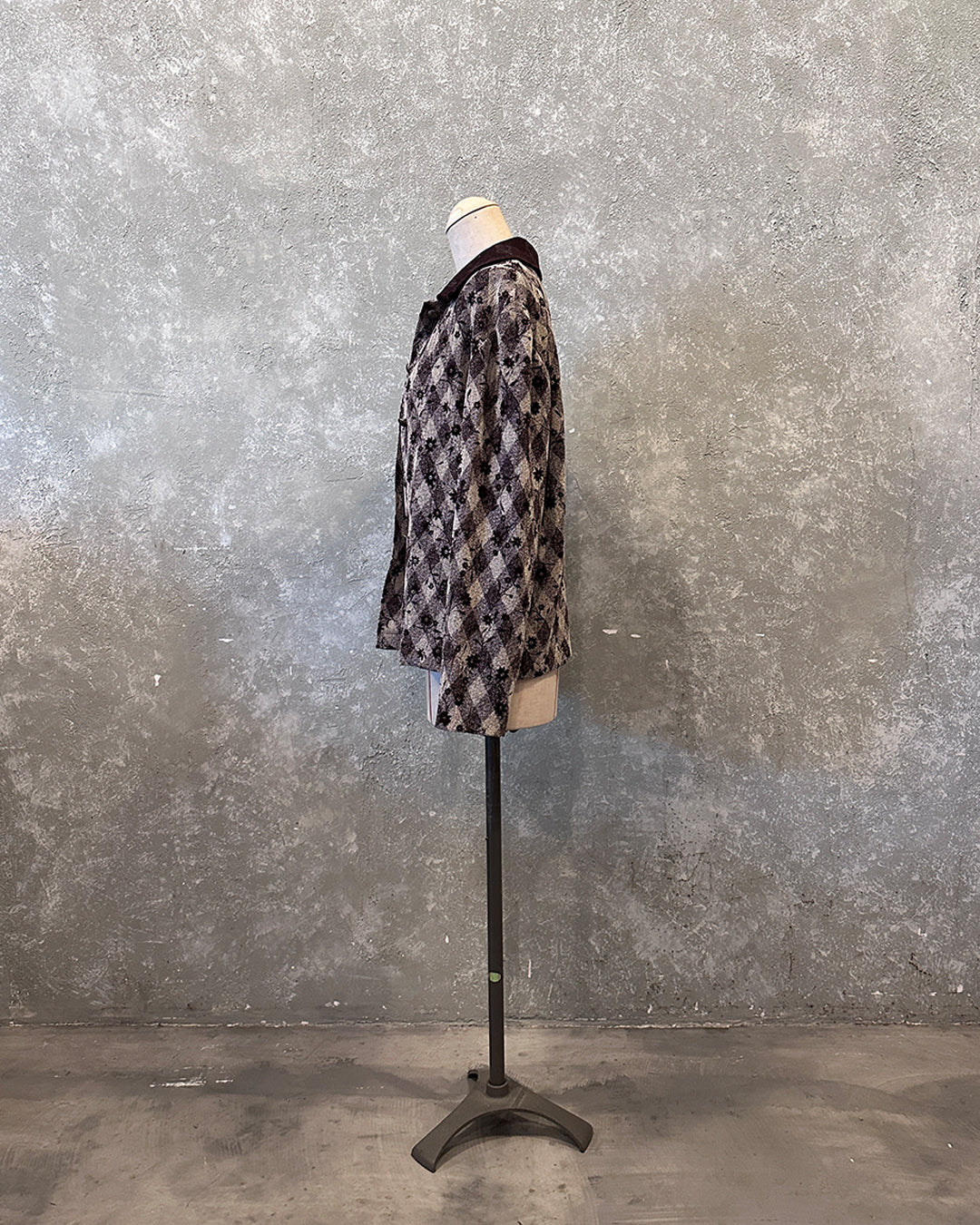 This Easy jacket in brown floral features a soft furniture fabric with a stunning japonense flower pattern. It also includes side pockets and a half lining in a complementary brown stripes pattern.