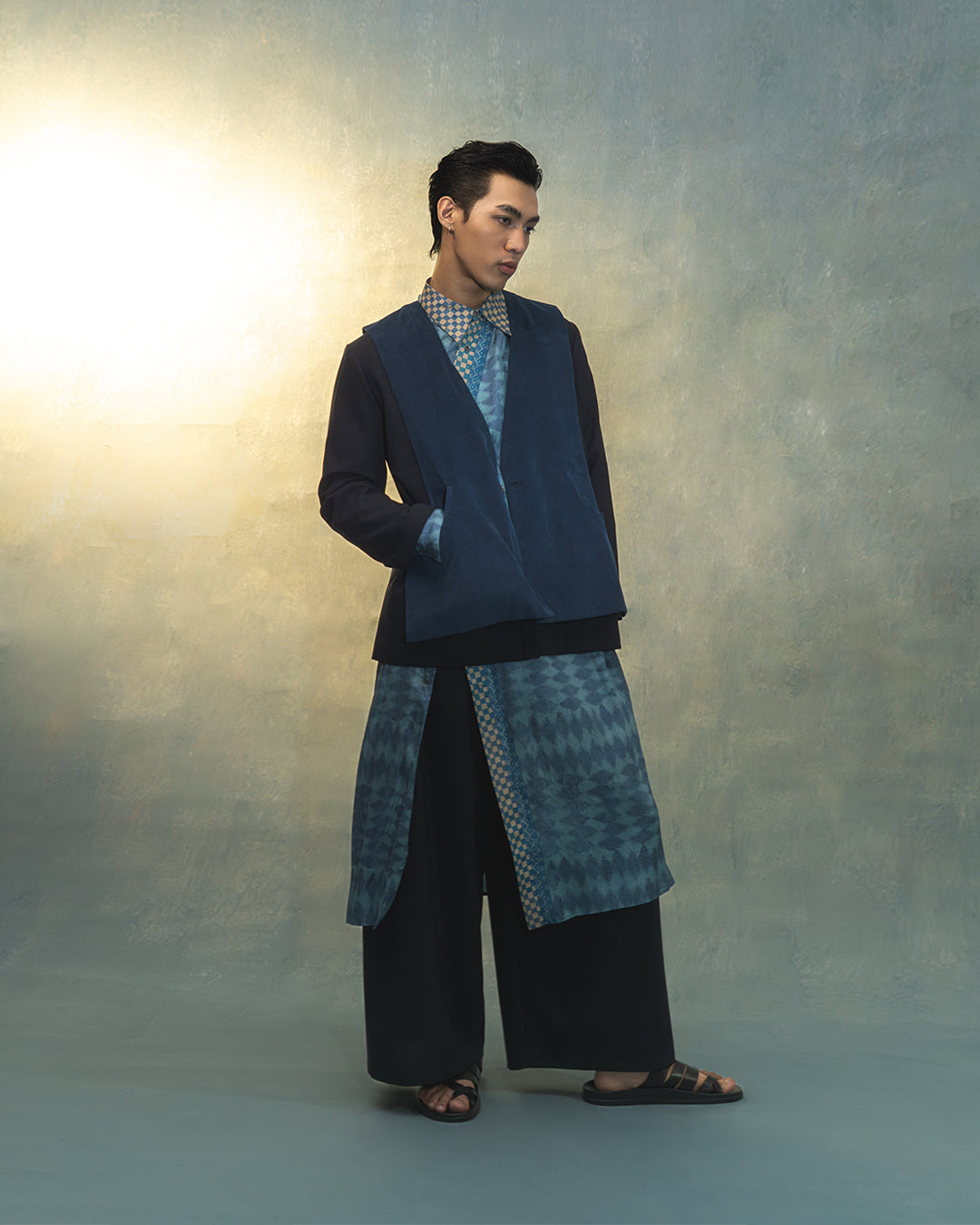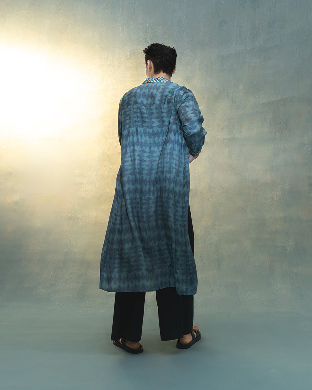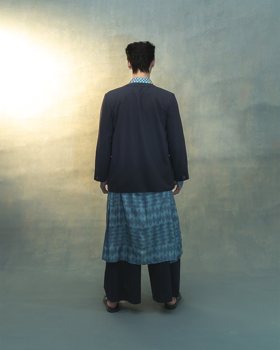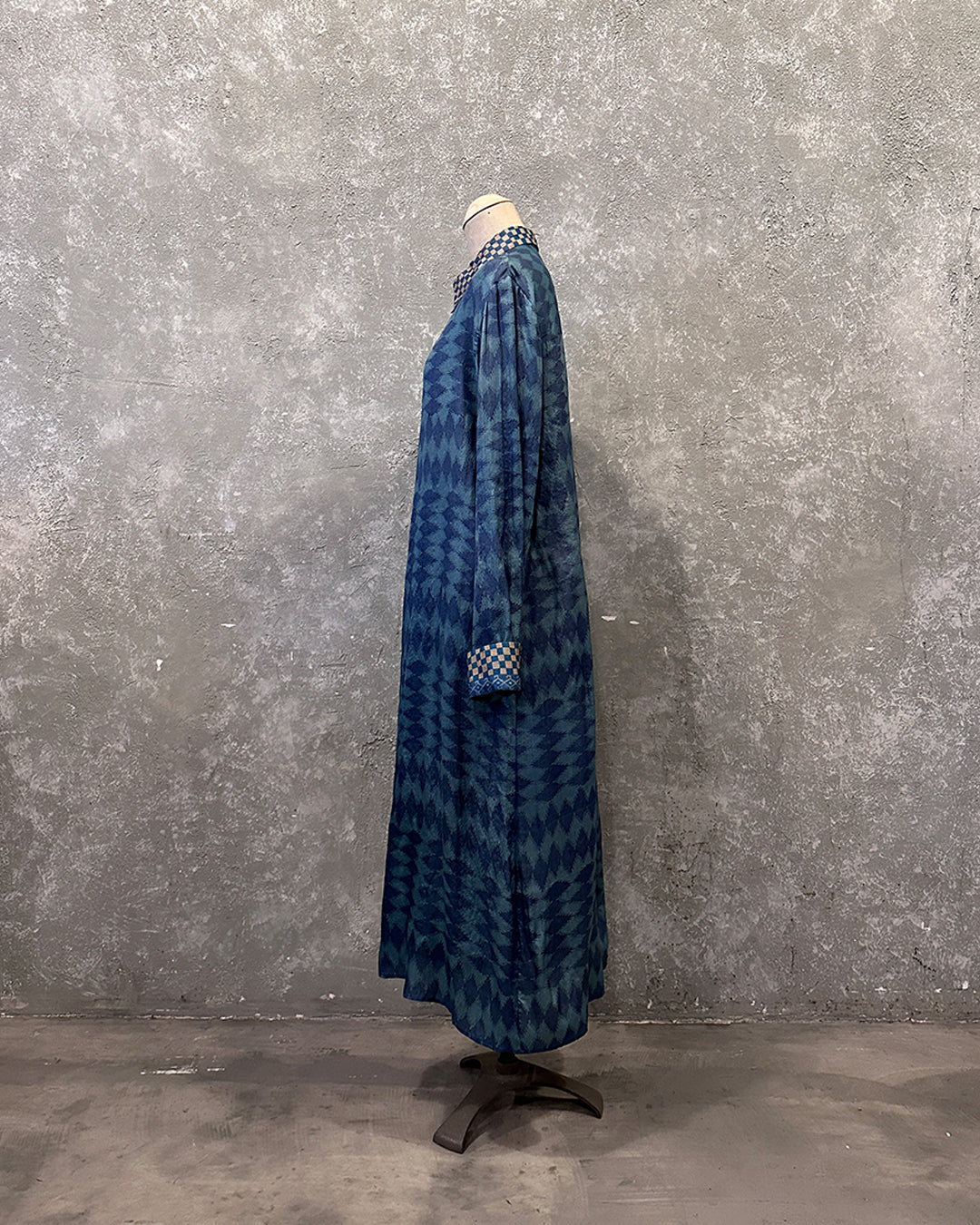 This mandarin long shirt is crafted from a vintage India saree, offering a unique, lightweight silk piece with timeless Chinese-inspired design. The relaxed silhouette and intricate prints make it a statement of culture and craftsmanship.