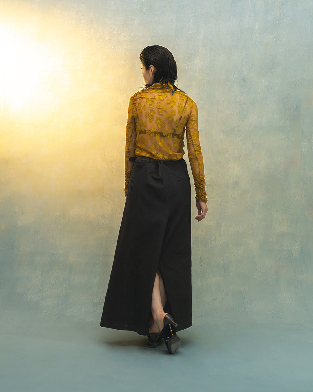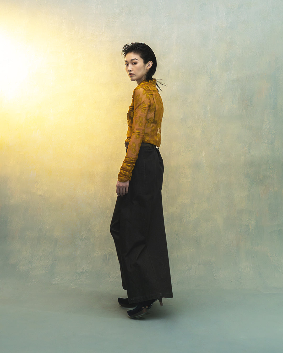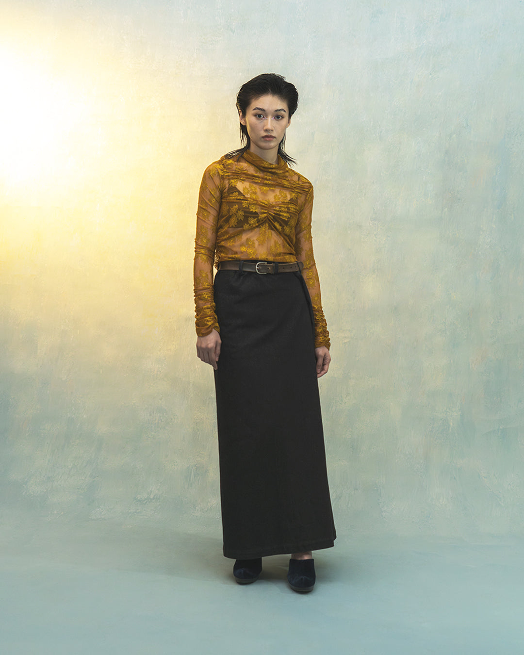 Nina floral lace mesh top in mustard