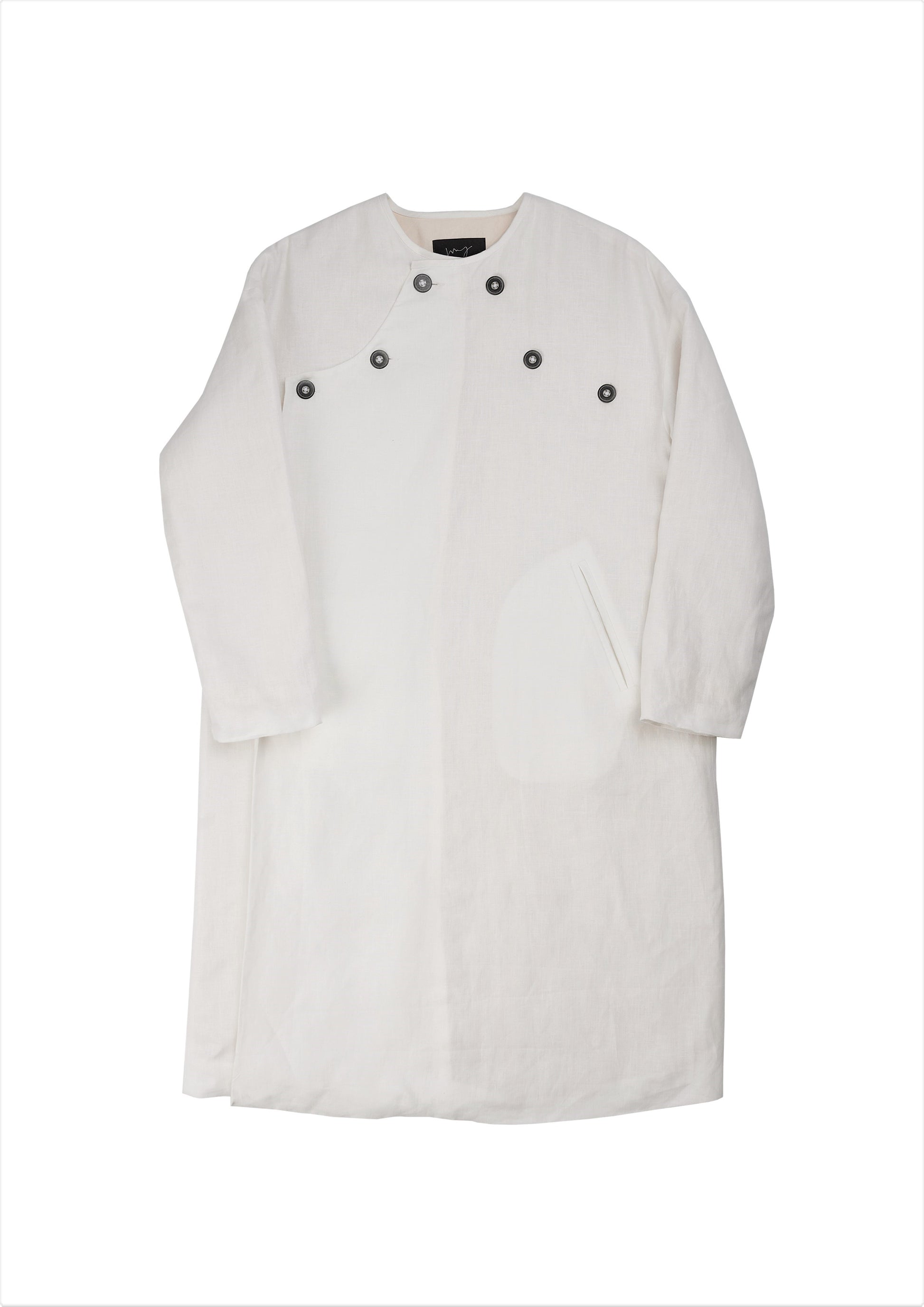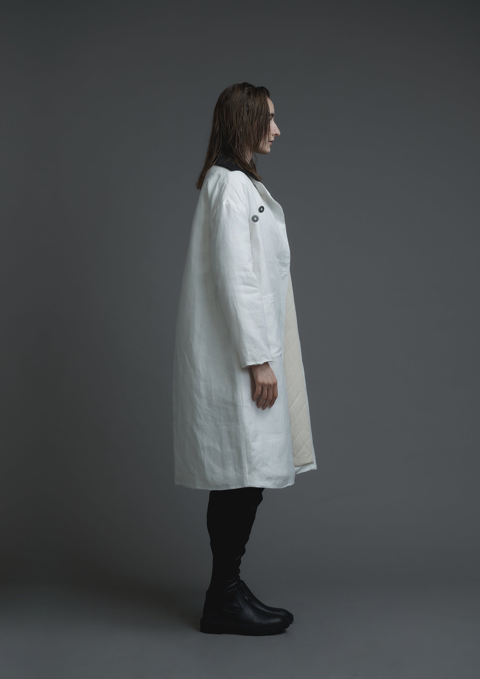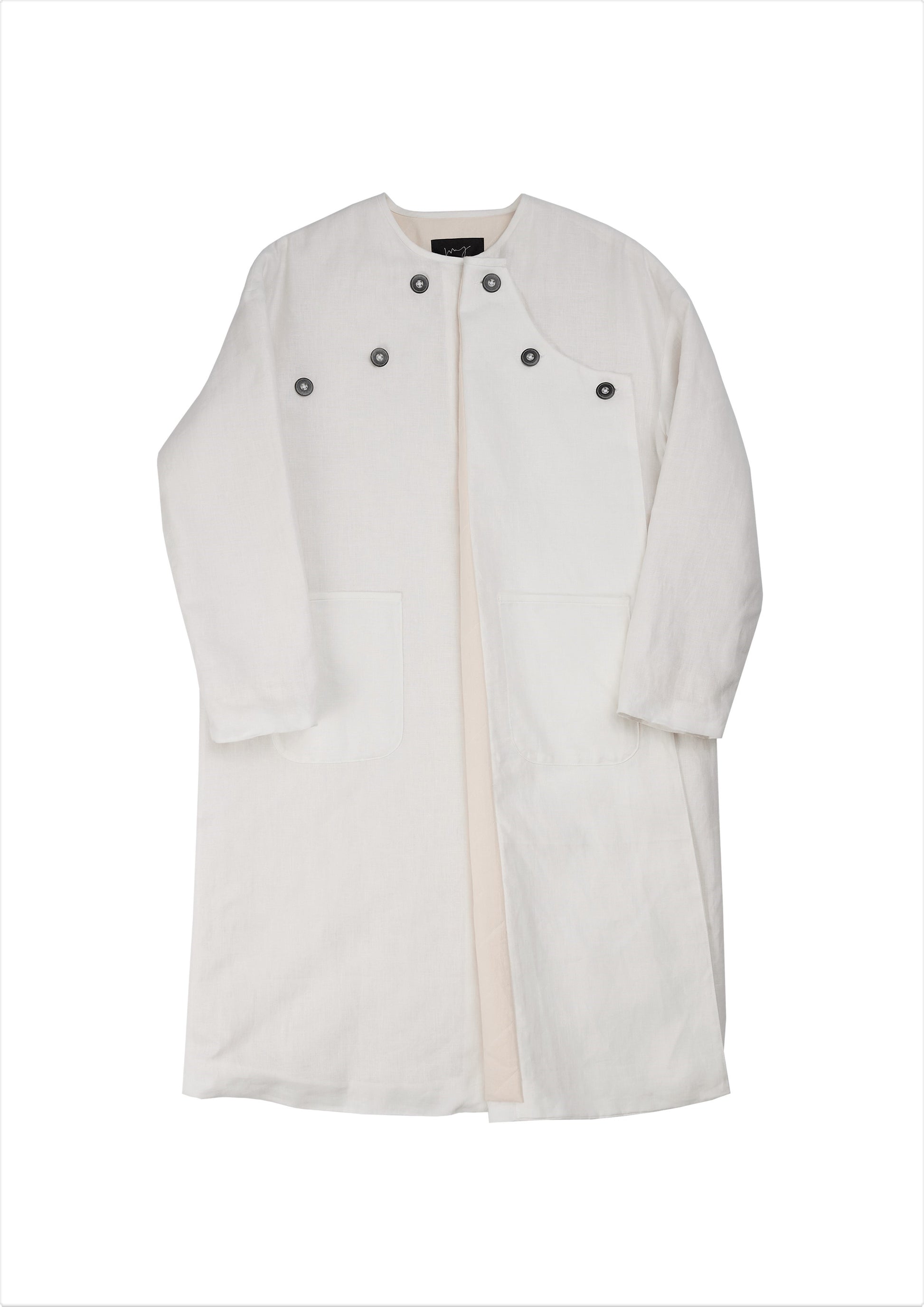 This product is influenced by medical protective and patient clothing and features discreet cuffs with elastic bands, as well as front and inner side pockets. The coat also boasts a quilted cotton lining for extra comfort and warmth.