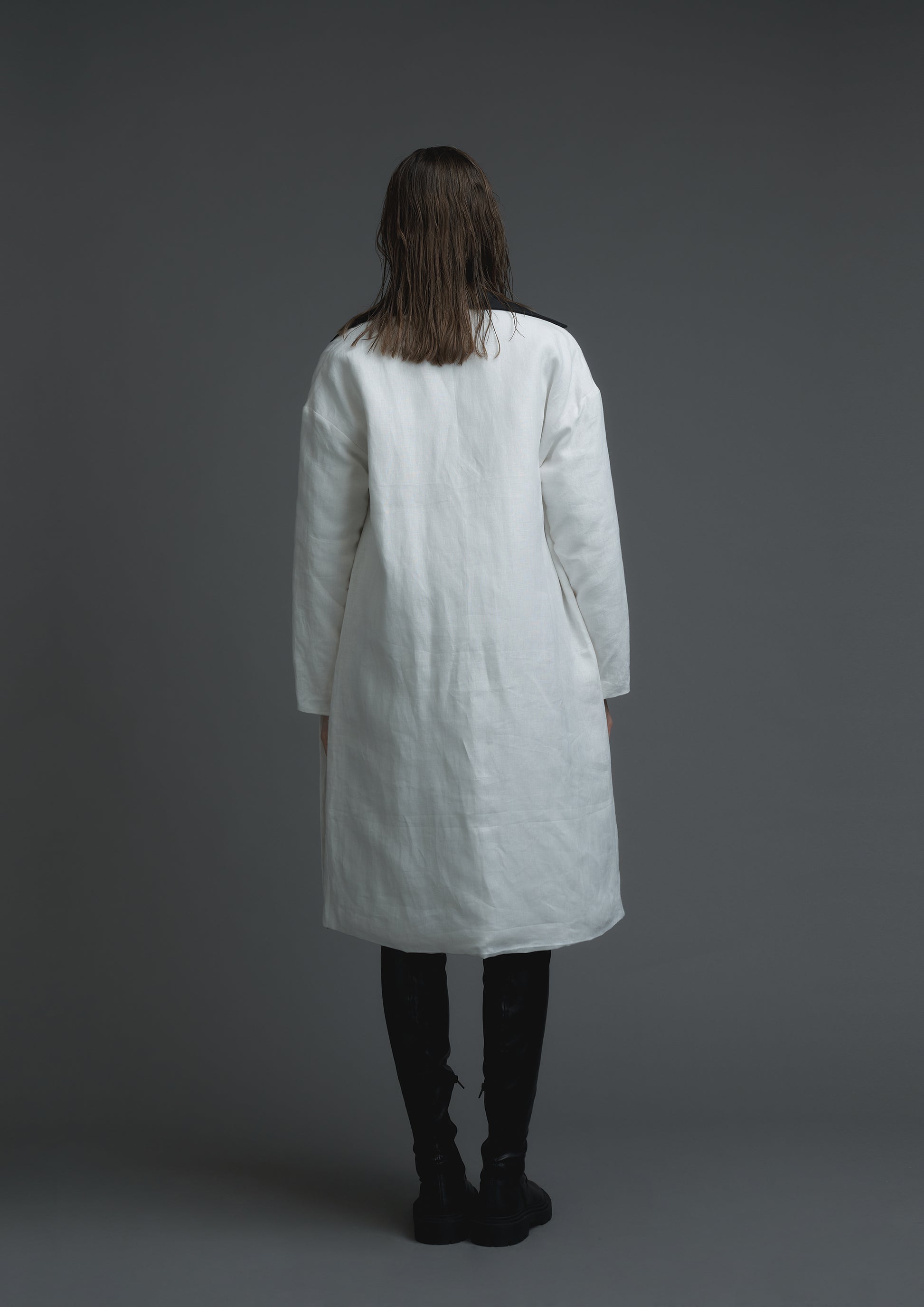 Patient quilted coat in white linen
