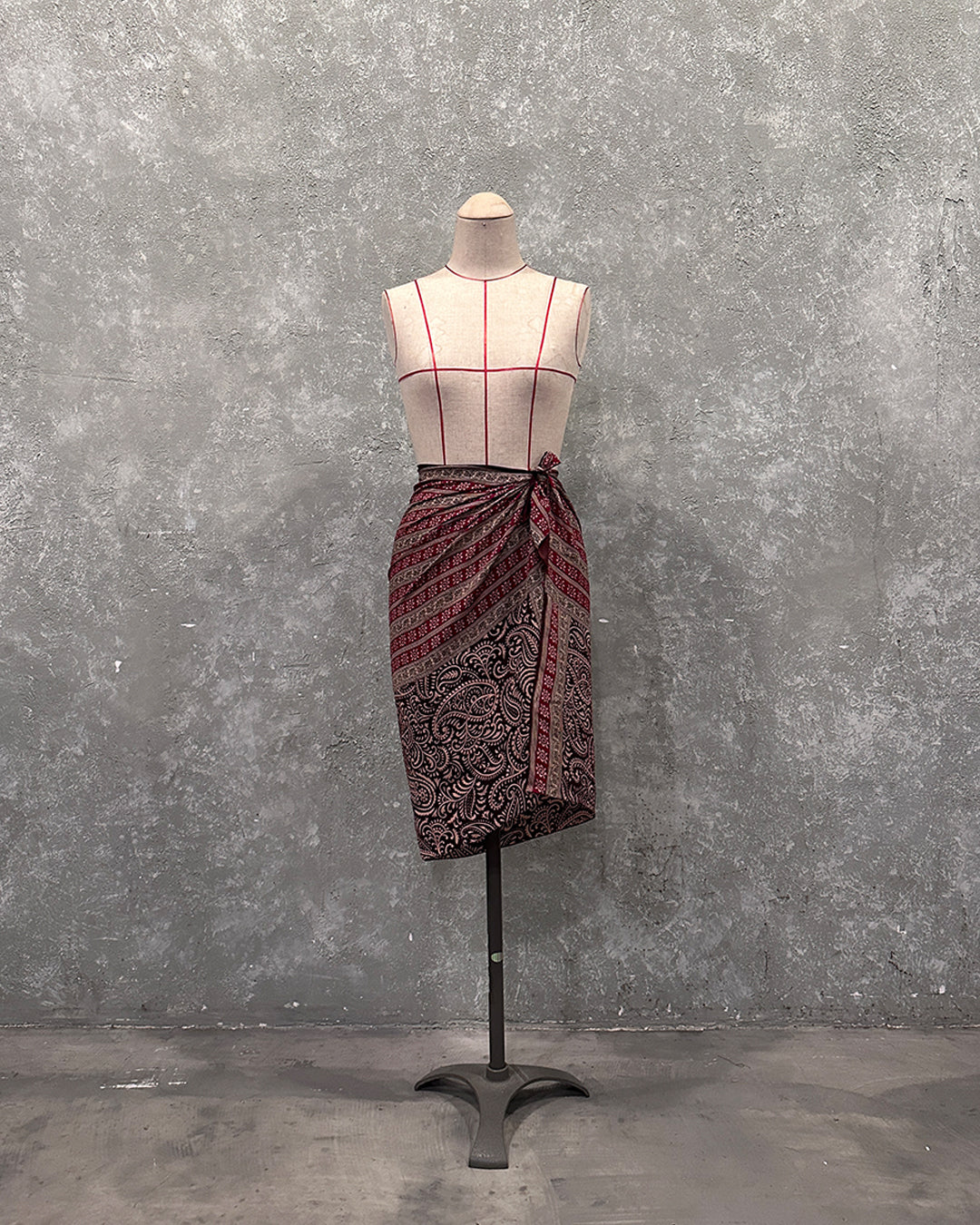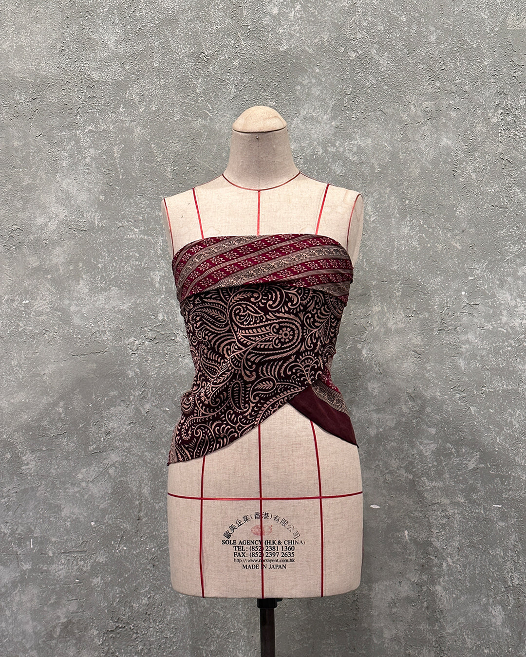 This silky red scarf is made from a vintage saree from India, ensuring that each piece has a unique print and is one of a kind. It can be styled as a tube top or a skirt, thanks to its versatile rectangle shape. Please keep in mind that there may be slight damage due to the vintage fabric used in production.