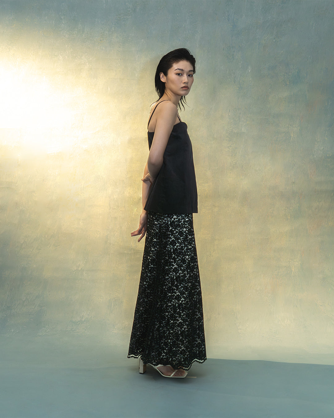 Inspired by the traditional kimono layering style, this tube dress features a form-fitting shape and is made with high-quality cotton twill velvet. It includes a single side pocket and is lined with luxurious cotton silk satin.