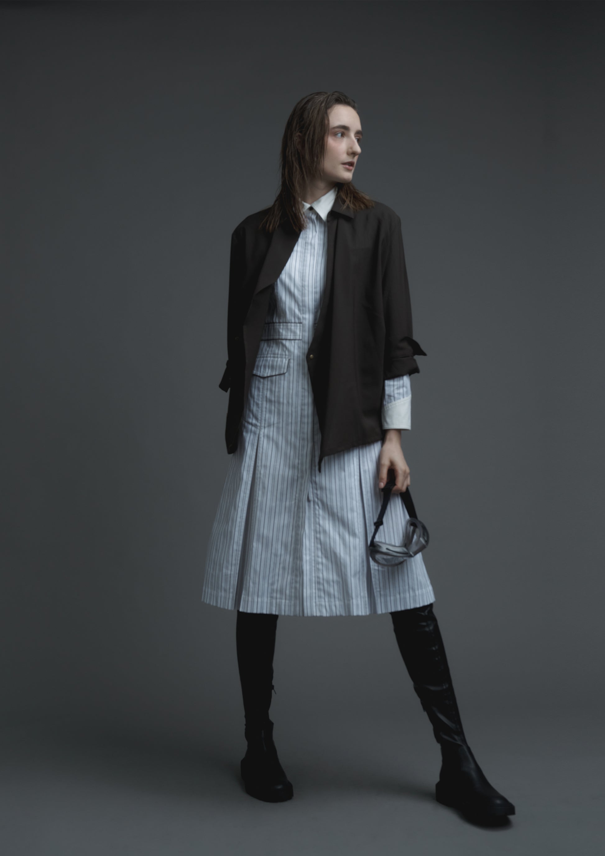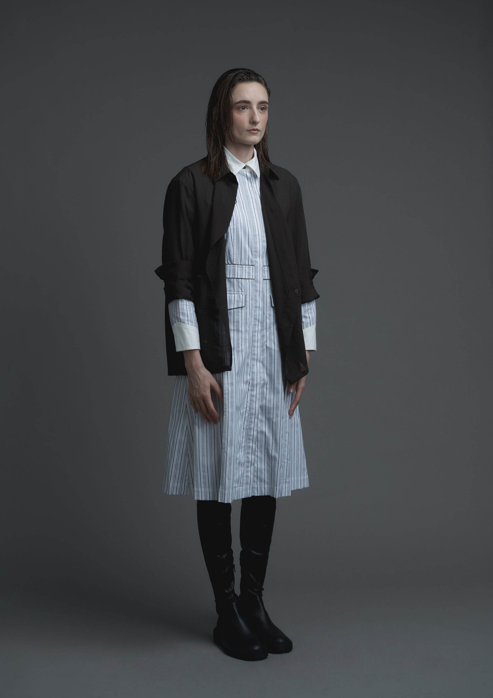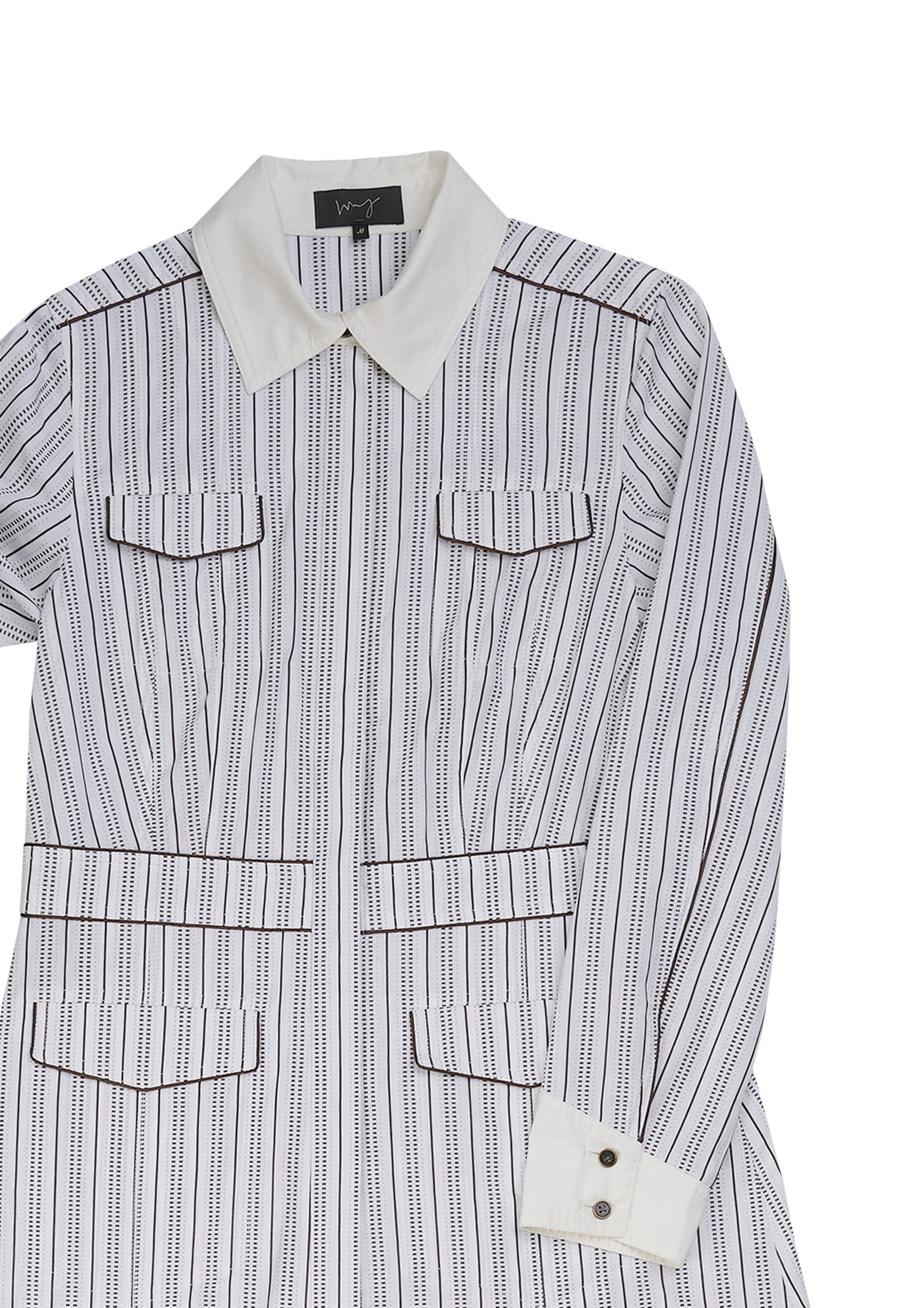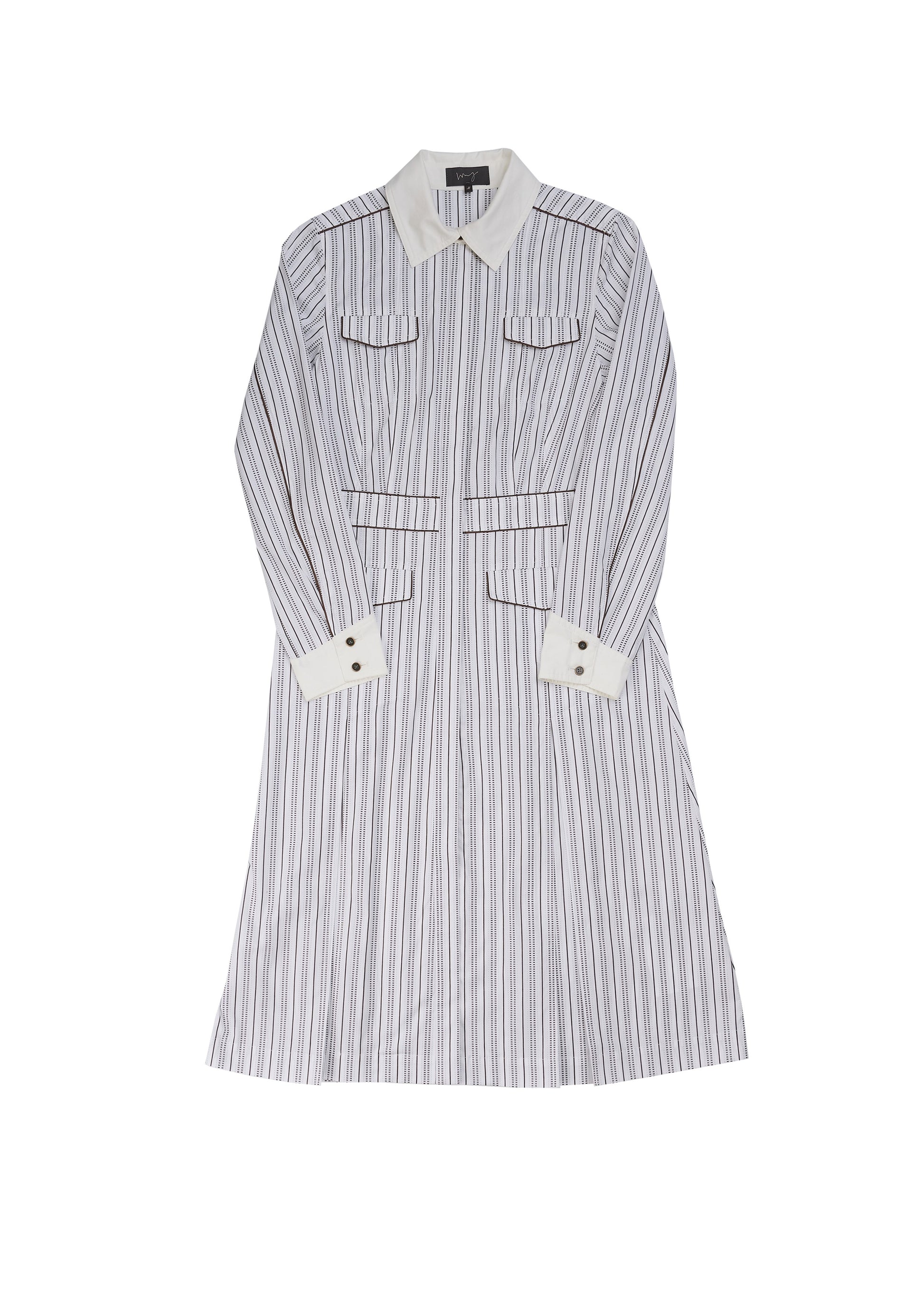 Uniform shirt dress in brown and white striped shirting